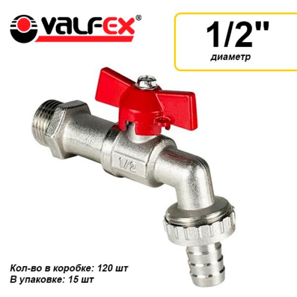 Кран шаровой латунный 1/2" водоразборный со штуцером, ручка-бабочка, НИКЕЛИР-Й VALFEX (120/15) К