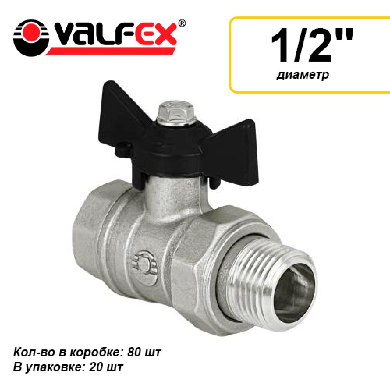 Кран шаровой латунный DeltaPro для ВОДЫ 1/2" ВР/НР ручка-бабочка, американка, НИК-Й VALFEX 11Б27фт1М (80/20)