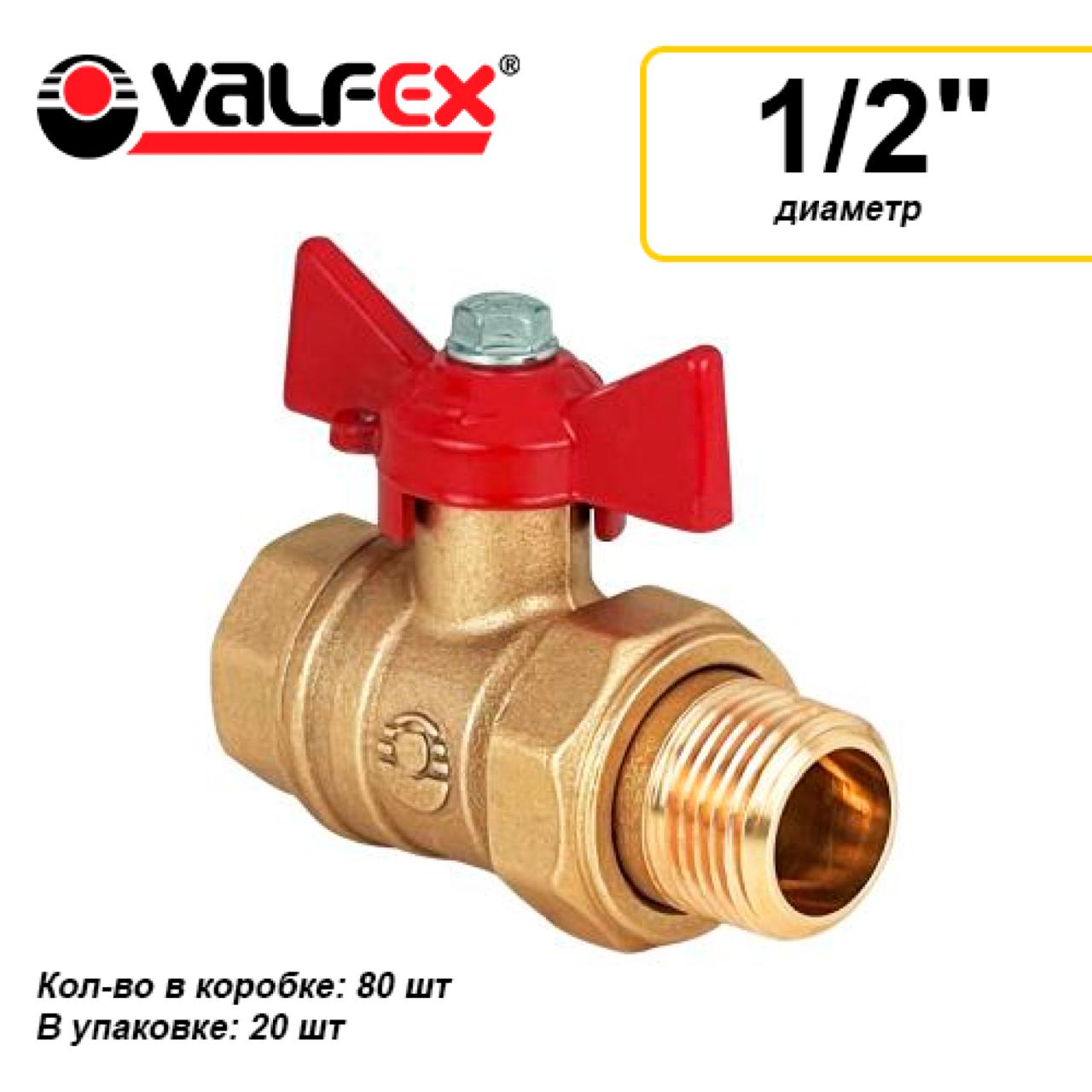 Кран шаровой латунный DeltaPro для ВОДЫ 1/2" ВР/НР ручка-бабочка, американка,VALFEX 11Б27фт1М (80/20)