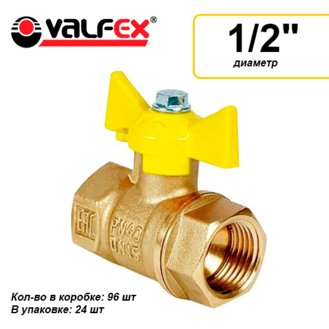 Кран шаровой N/P59 для ГАЗА 1/2" ВР/ВР ручка-бабочка, латунный VALFEX 11Б27фтМ (96/24)
