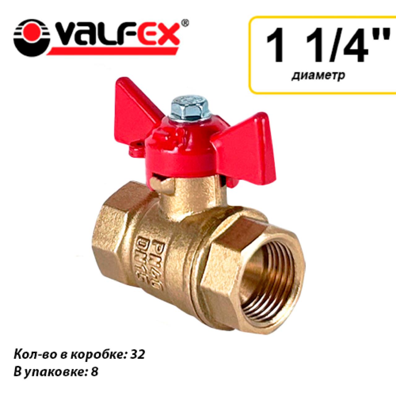 Кран шаровой N/P59 для ВОДЫ 1 1/4" ВР/ВР ручка-бабочка, латунный VALFEX 11Б27фт1М (32/8)