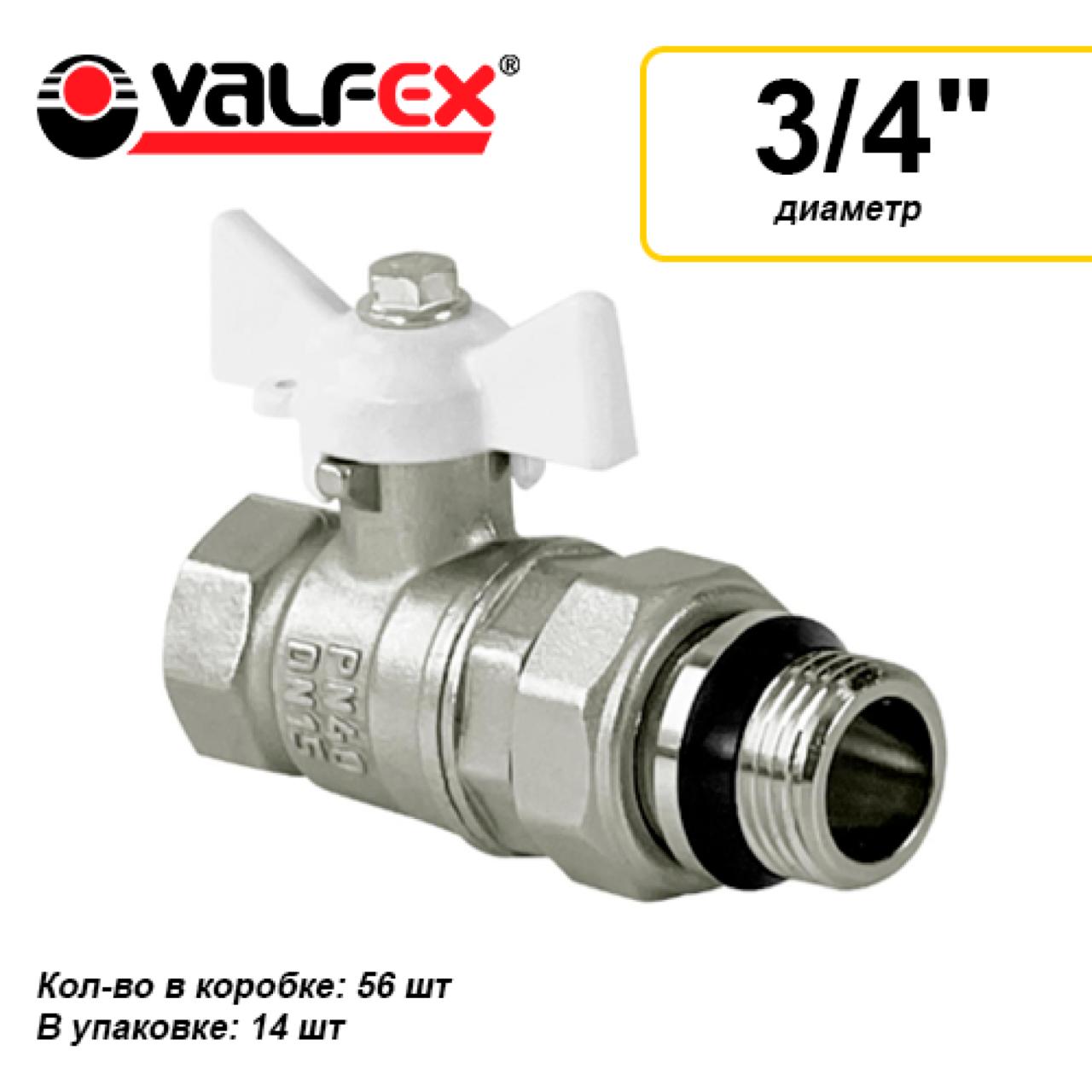Кран шаровой N/P59 для ВОДЫ 3/4" ВР/НР, штуцер, резин. кольцо, бабочка БЕЛАЯ НИК-Й VALFEX (56/14)