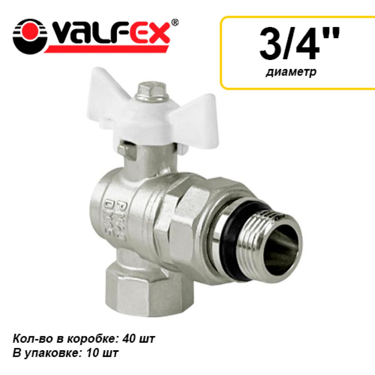 Кран шаровой N/P59 для ВОДЫ угл. 3/4" ВР/НР, штуцер, резин. кольцо,бабочка БЕЛАЯ НИК-Й VALFEX(40/10)