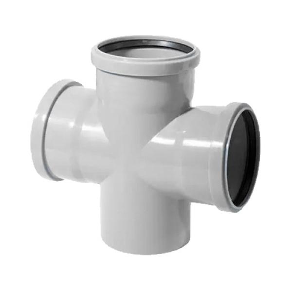 Крестовина используются для монтажа двух ответвлений одного диаметра от основных канализационных стояков, расположенных под углом 87,5°, транспортирующих стоки внутри жилых, административных, производственных зданий.