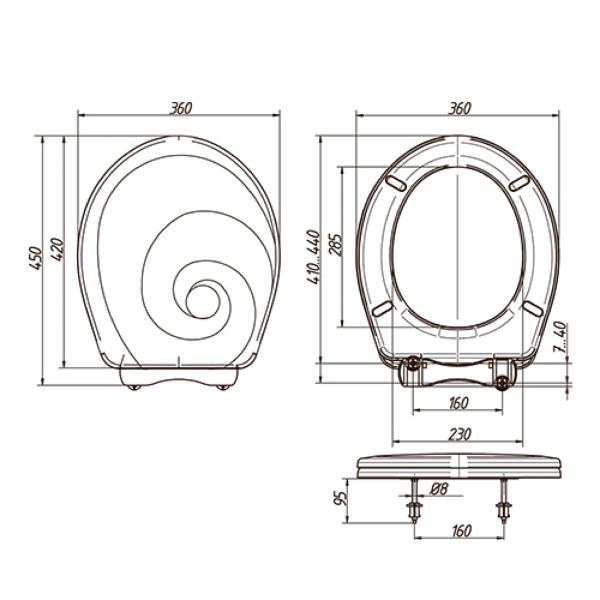 Крышка для унитаза, классической формы с креплением (ККУ-1), которое позволяет регулировать его по длине, цвет белый. Рельеф самой крышкой в виде улитки.