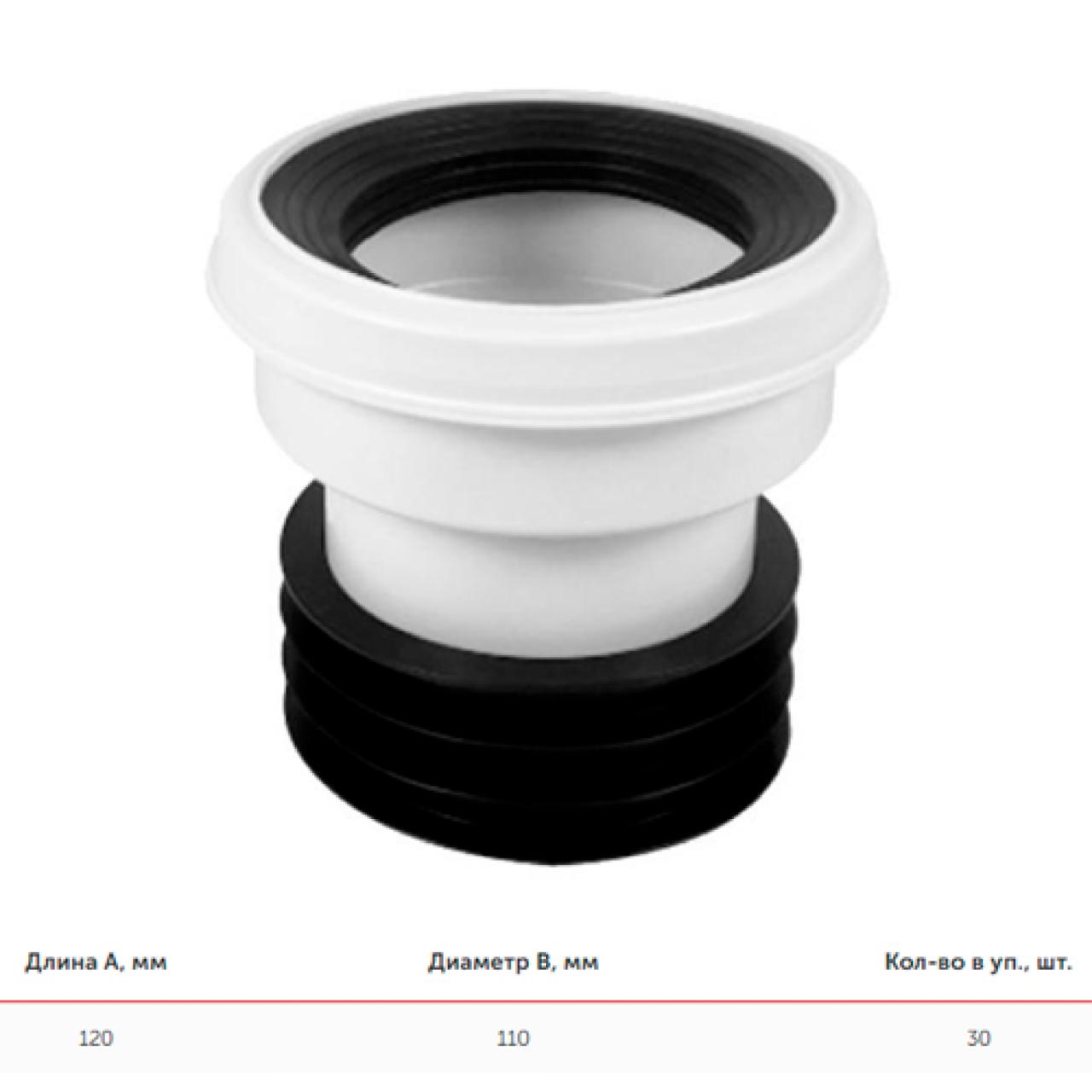Манжета для унитаза соединительная прямая ЖЕСТКАЯ 110x120 мм VALFEX (30)