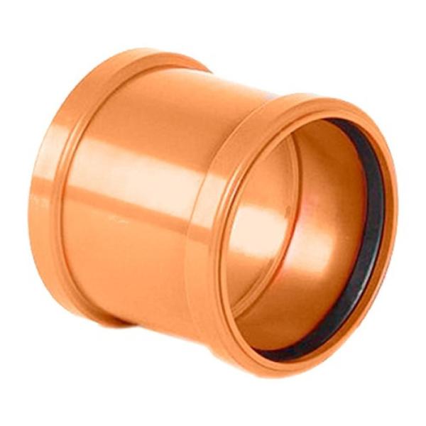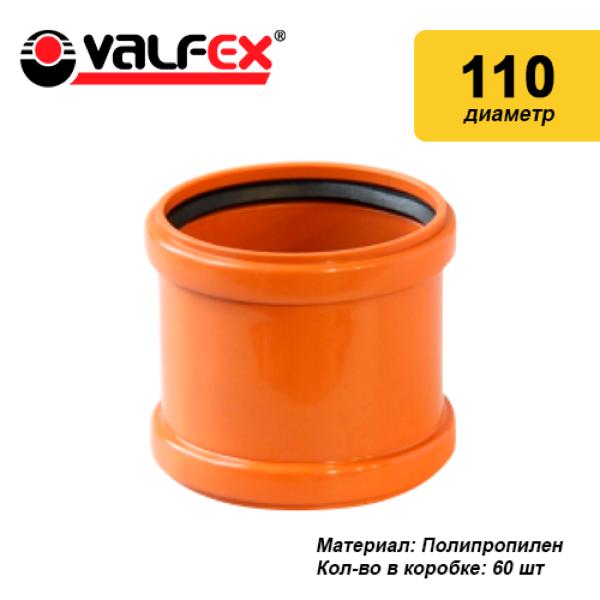 Муфта двухраструбная 110 мм РЫЖАЯ нар.канализ. (60) VALFEX (ремонтная, без перегородки)