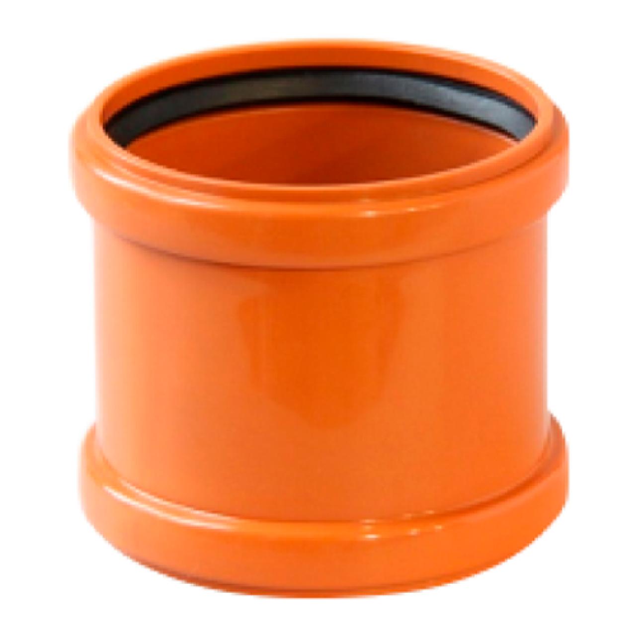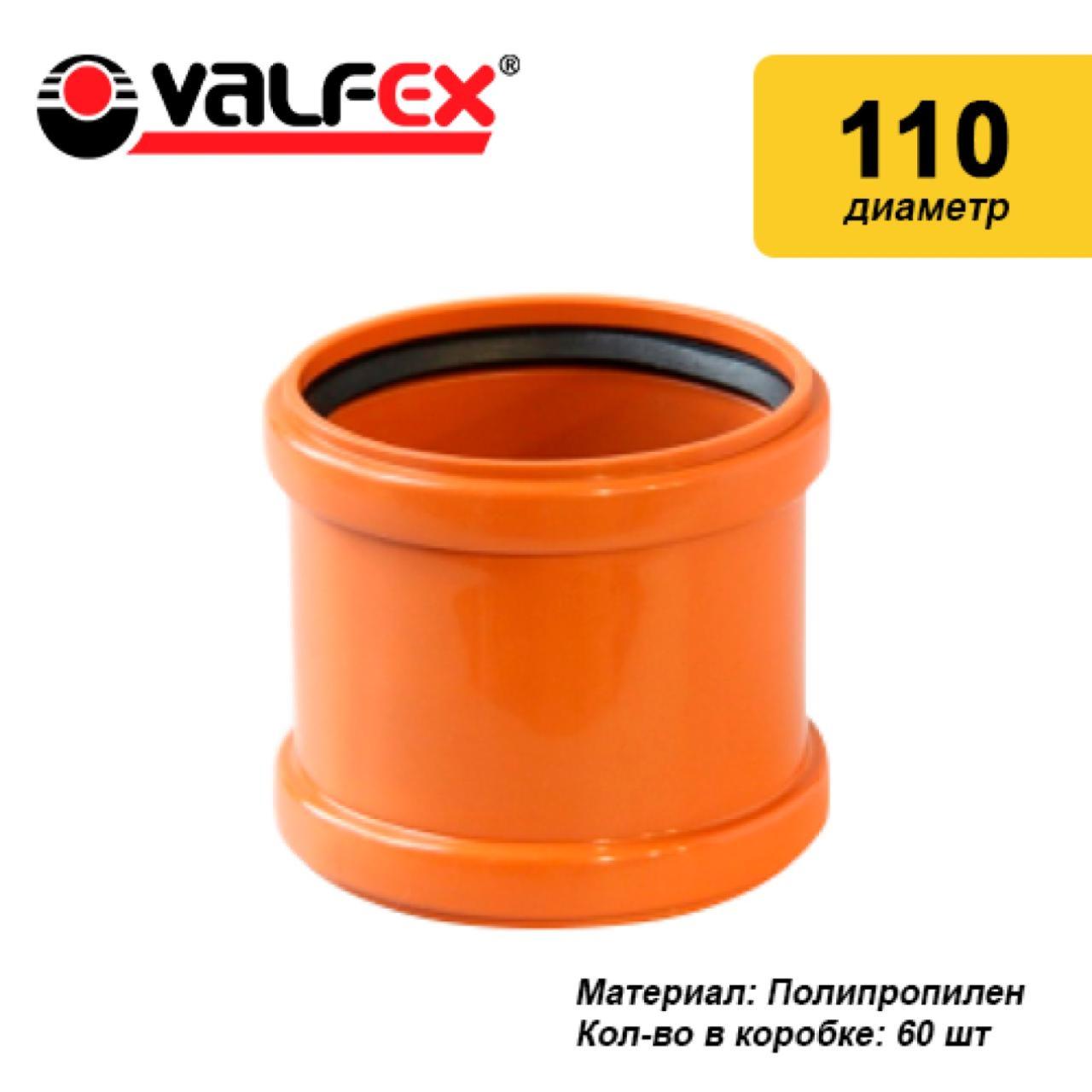 Муфта двухраструбная 110 мм РЫЖАЯ нар.канализ. (60) VALFEX (соединительная, с перегородкой)