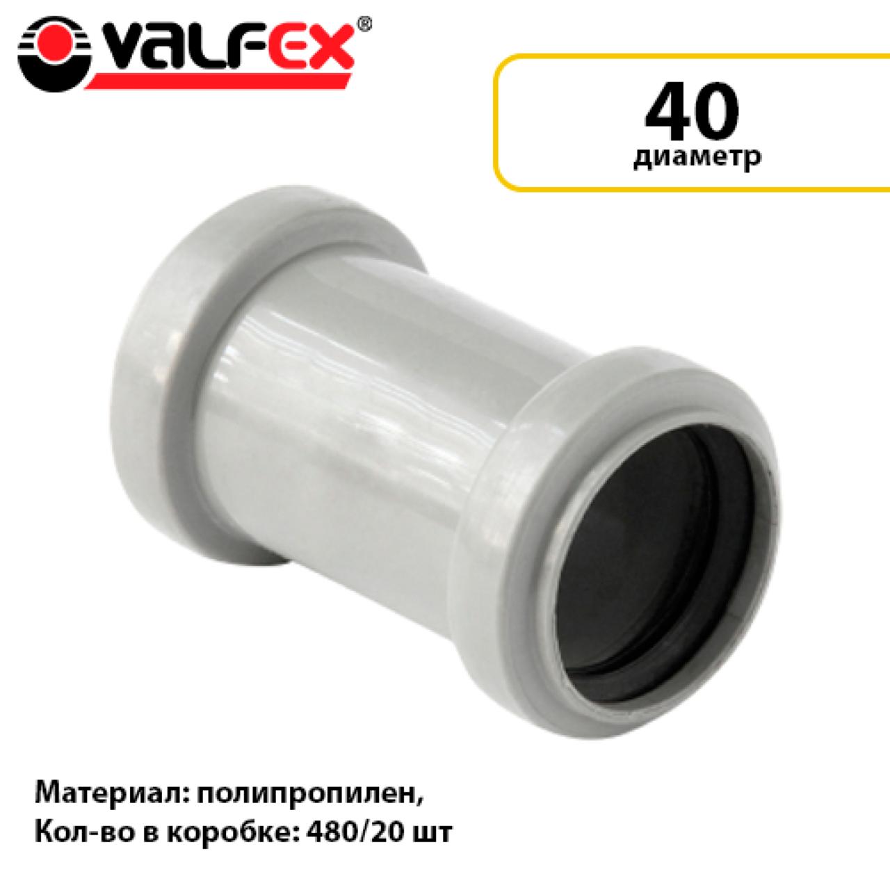 Муфта двухраструбная 40 мм вн. канализация (480/20) VALFEX (ремонтная, без перегородки)