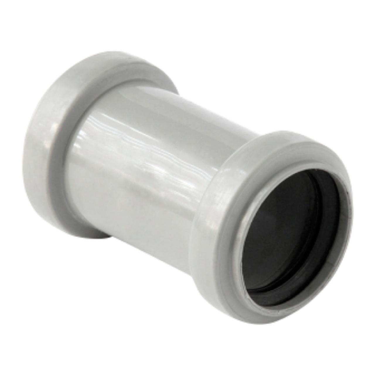 Муфта двухраструбная для внутренней канализации (ремонтная, без перегородки) предназначена для соединения полипропиленовых канализационных труб системы внутренней канализации одного диаметра не имеющих раструб или в случае ремонта трубопровода. Герметичность соединения обеспечивается резиновыми однолепестковыми кольцами установленными в раструб муфты.