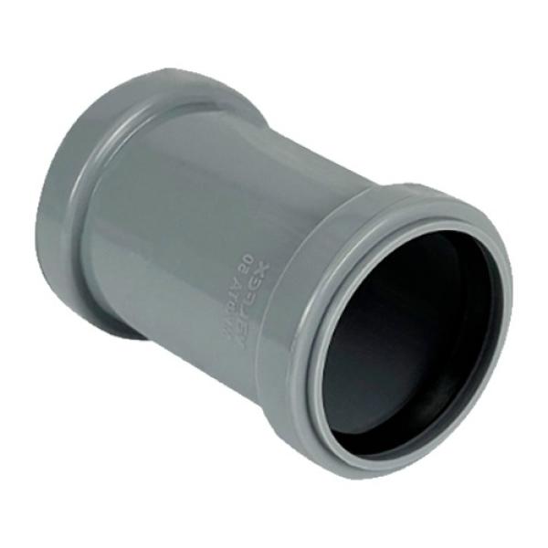 Муфта двухраструбная для внутренней канализации (ремонтная, без перегородки) предназначена для соединения полипропиленовых канализационных труб системы внутренней канализации одного диаметра не имеющих раструб или в случае ремонта трубопровода. Герметичность соединения обеспечивается резиновыми однолепестковыми кольцами установленными в раструб муфты.