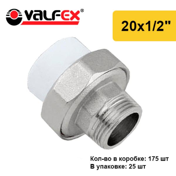 Муфта комб.разъём.(американка) с наружной резьбой 20х1/2" (175/25) (Valfex) БЕЛАЯ