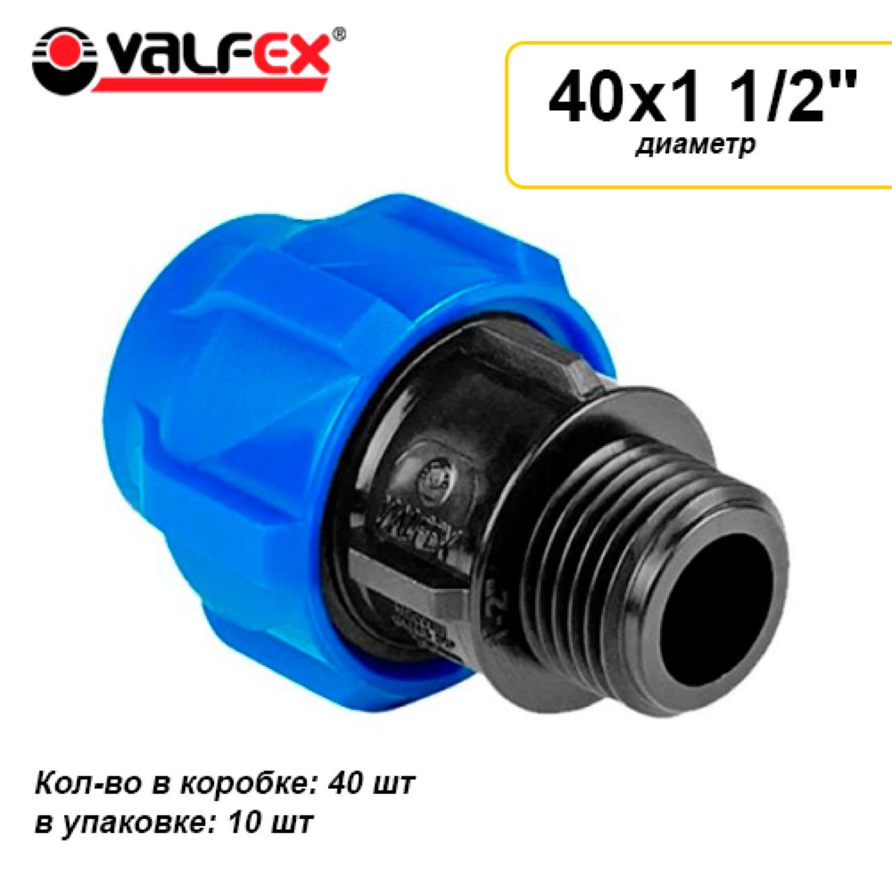 Муфта ПНД компр. соединительная c наружной резьбой 40х1 1/2" (40/10) VALFEX