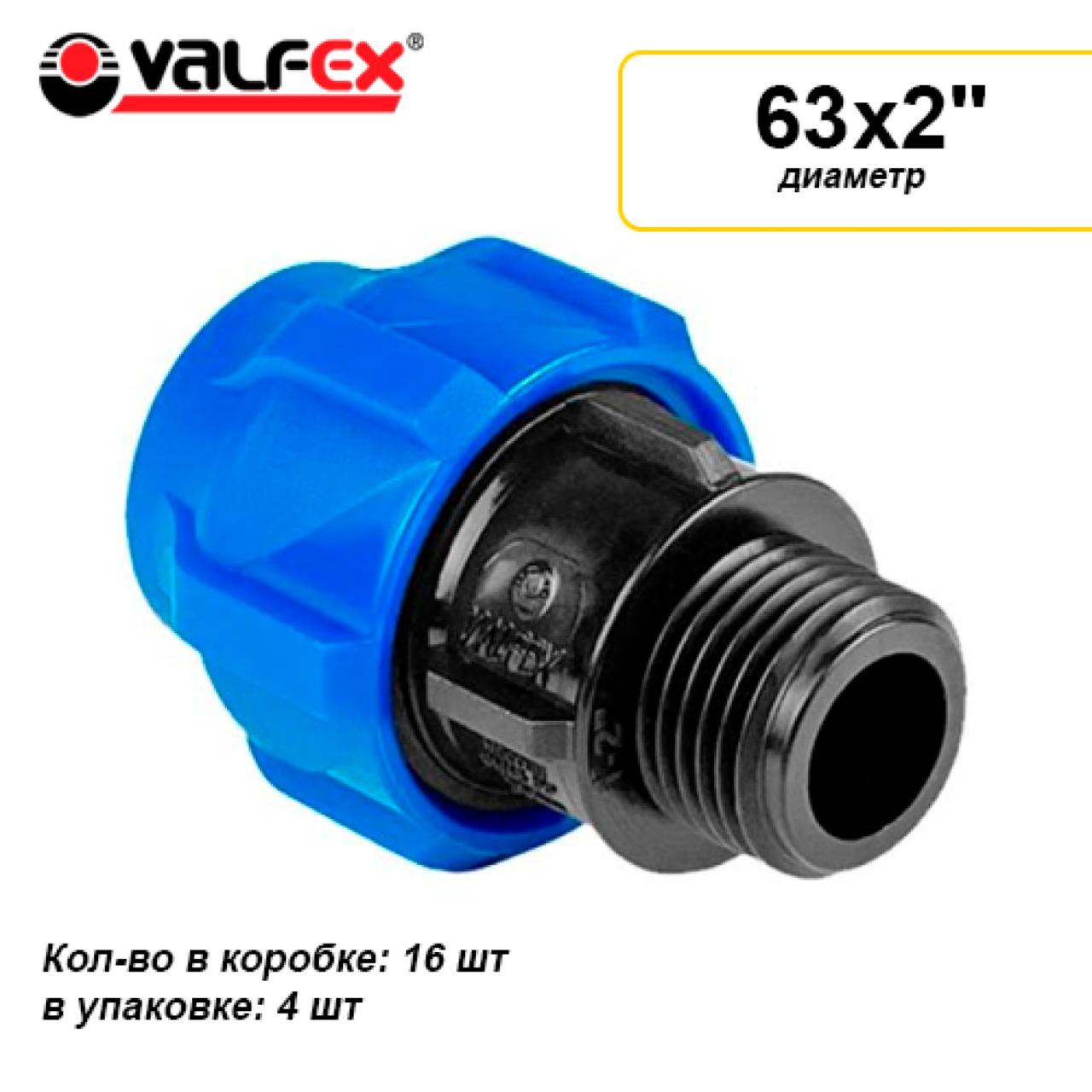 Муфта ПНД компр. соединительная c наружной резьбой 63х2" (16/4) VALFEX