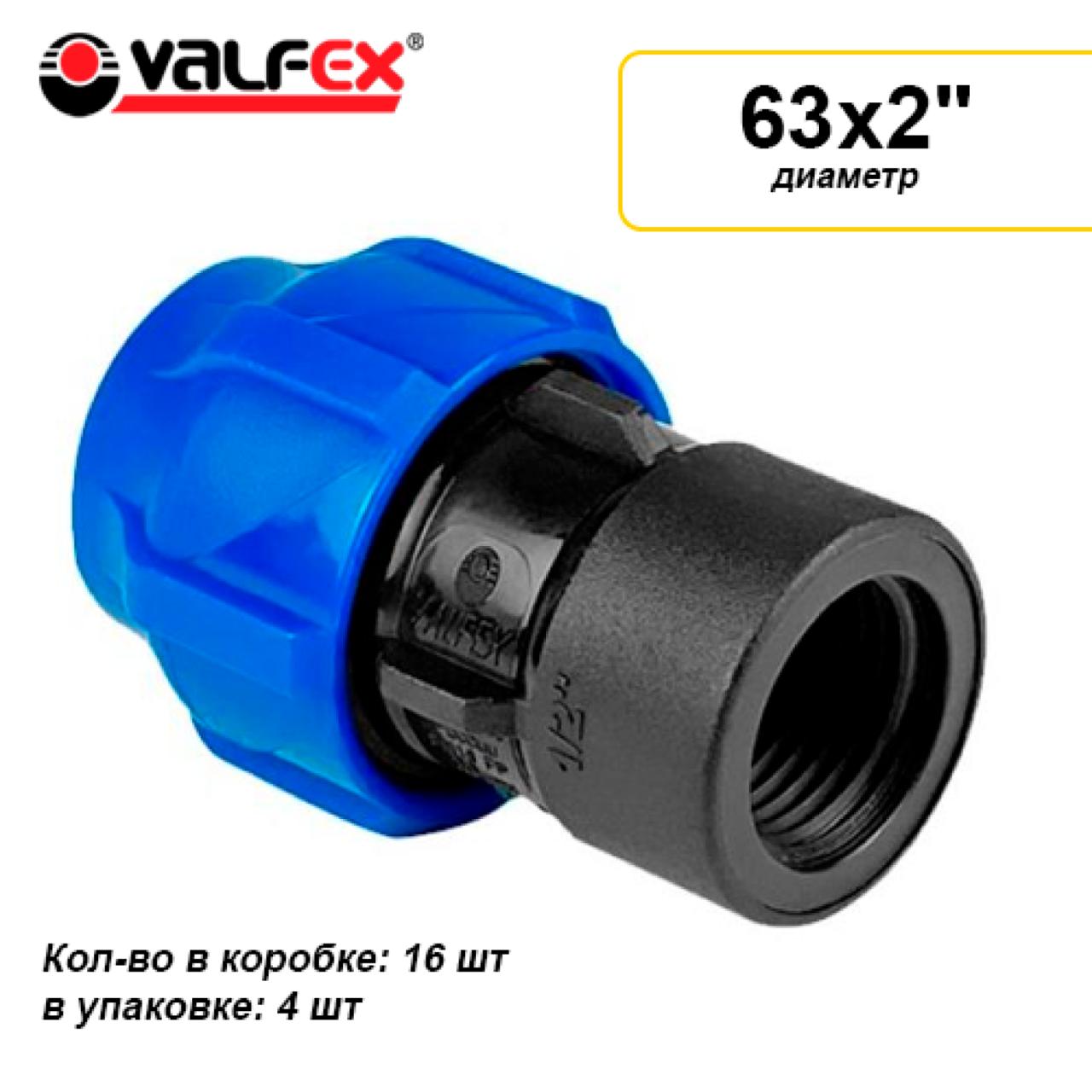 Муфта ПНД компр. соединительная c внутренней резьбой 63х2" (16/4) VALFEX