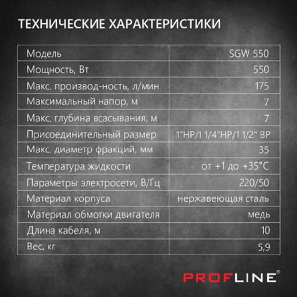 Насос дренажный PROFLINE SGW 550 нерж 550 Вт (для грязной воды)