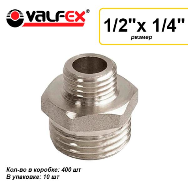 Ниппель НИКЕЛИРОВАННЫЙ переходной VALFEX НР 1/2" - НР 1/4" (400/10)