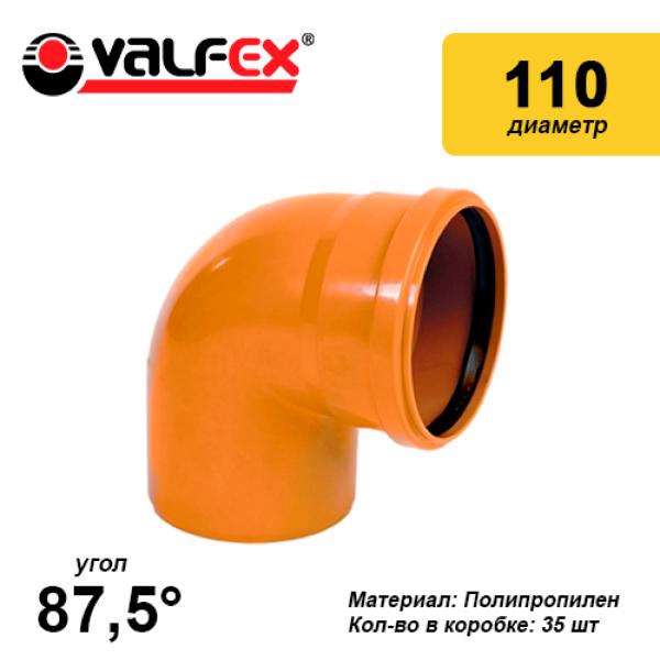 Отвод 87,5* 110мм РЫЖИЙ нар.канализ.(35) VALFEX