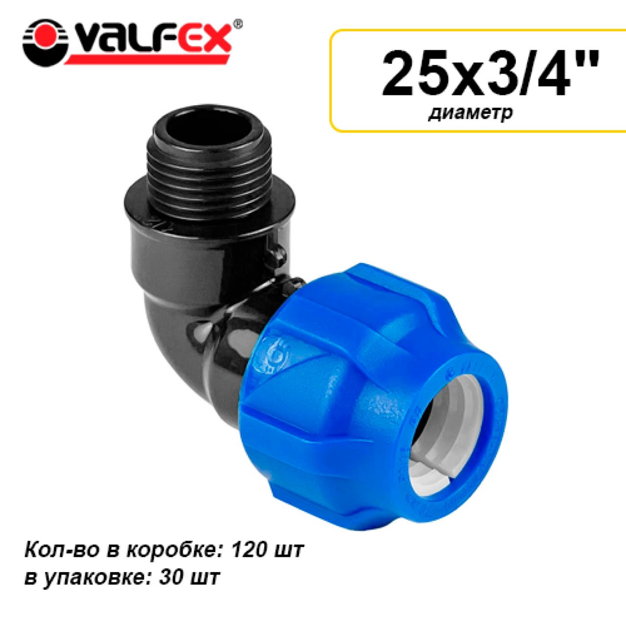 Отвод ПНД компрессионный с наружной резьбой 25х3/4" (120/30) VALFEX