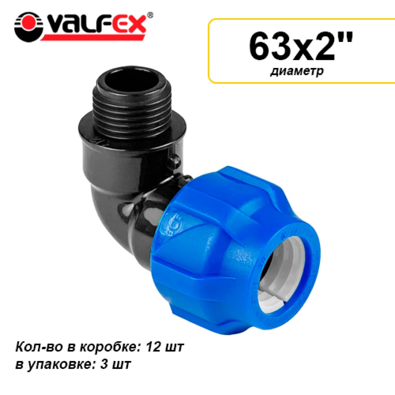Отвод ПНД компрессионный с наружной резьбой 63х2" (12/3) VALFEX