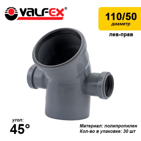 Отвод универсальный 110/50х45° лев.-прав. вн.канализ. (30) VALFEX