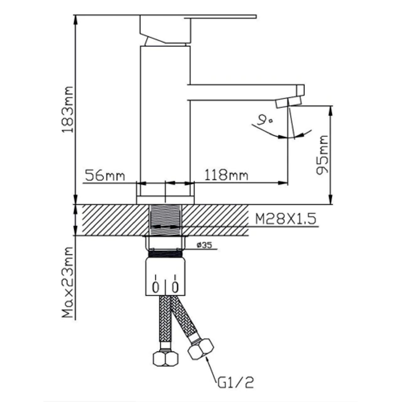 Комплектация: смеситель, крепёж, две гибкие подводки 1/2" длиной 35 см, паспорт изделия
