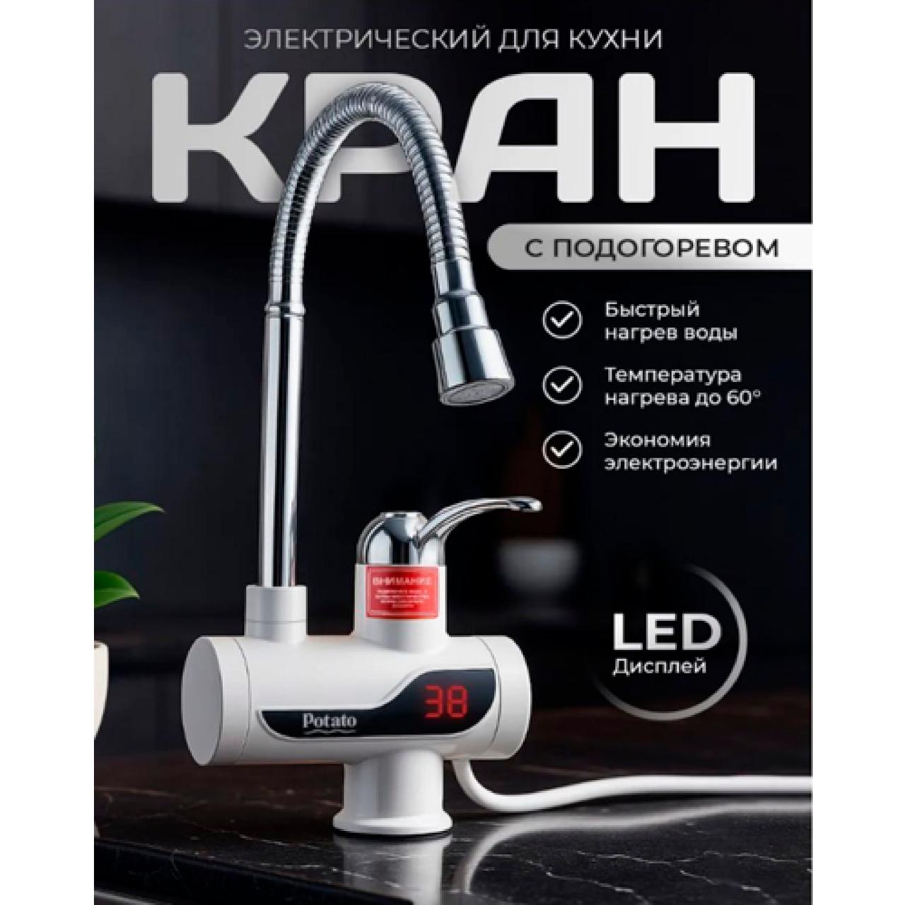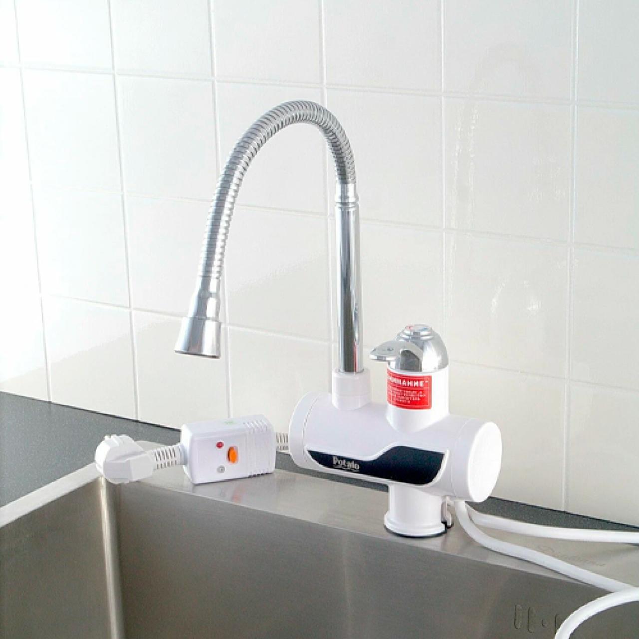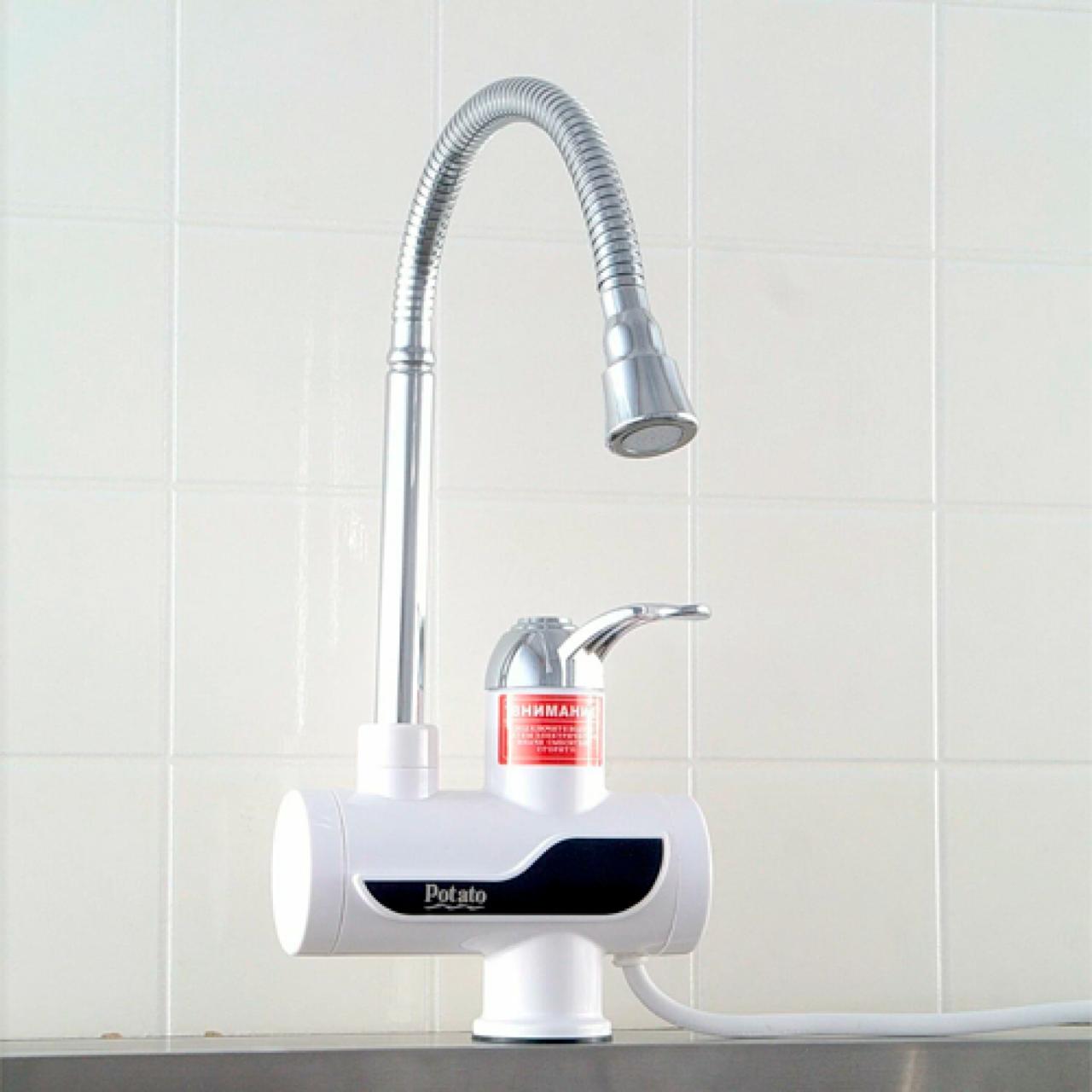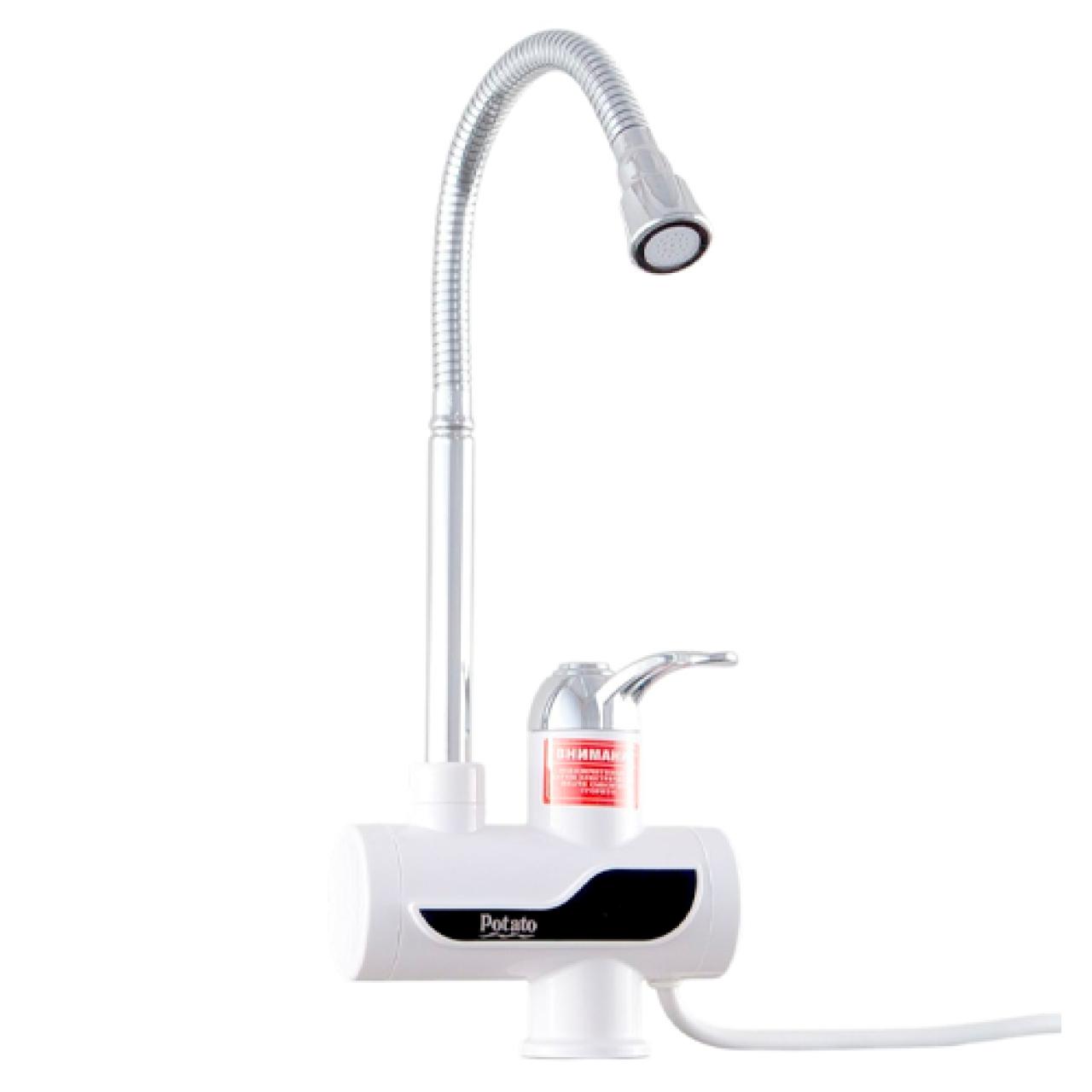 Электрический проточный водонагреватель Potato P0060-7 с гибким изливом. Серия INFINITI- Внутренний резервуар из прочного термостойкого пластика; Надежный медный ТЭН Система безопасности и аварийного отключения, класс влагозащита IPX4; кран+душ.