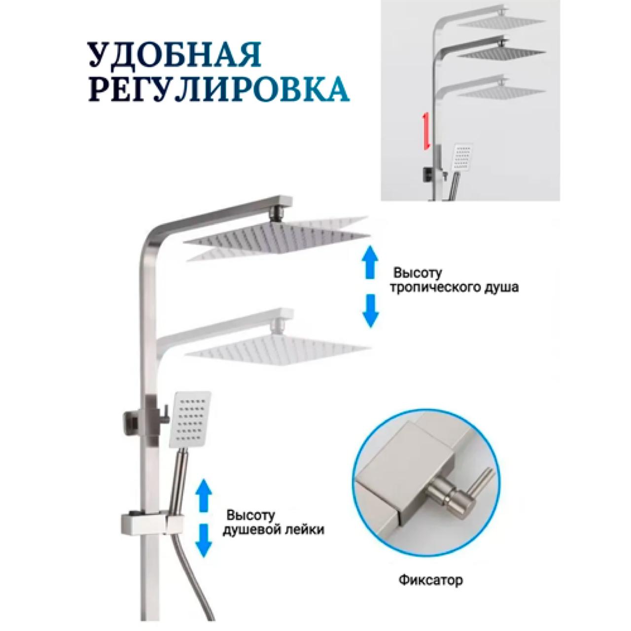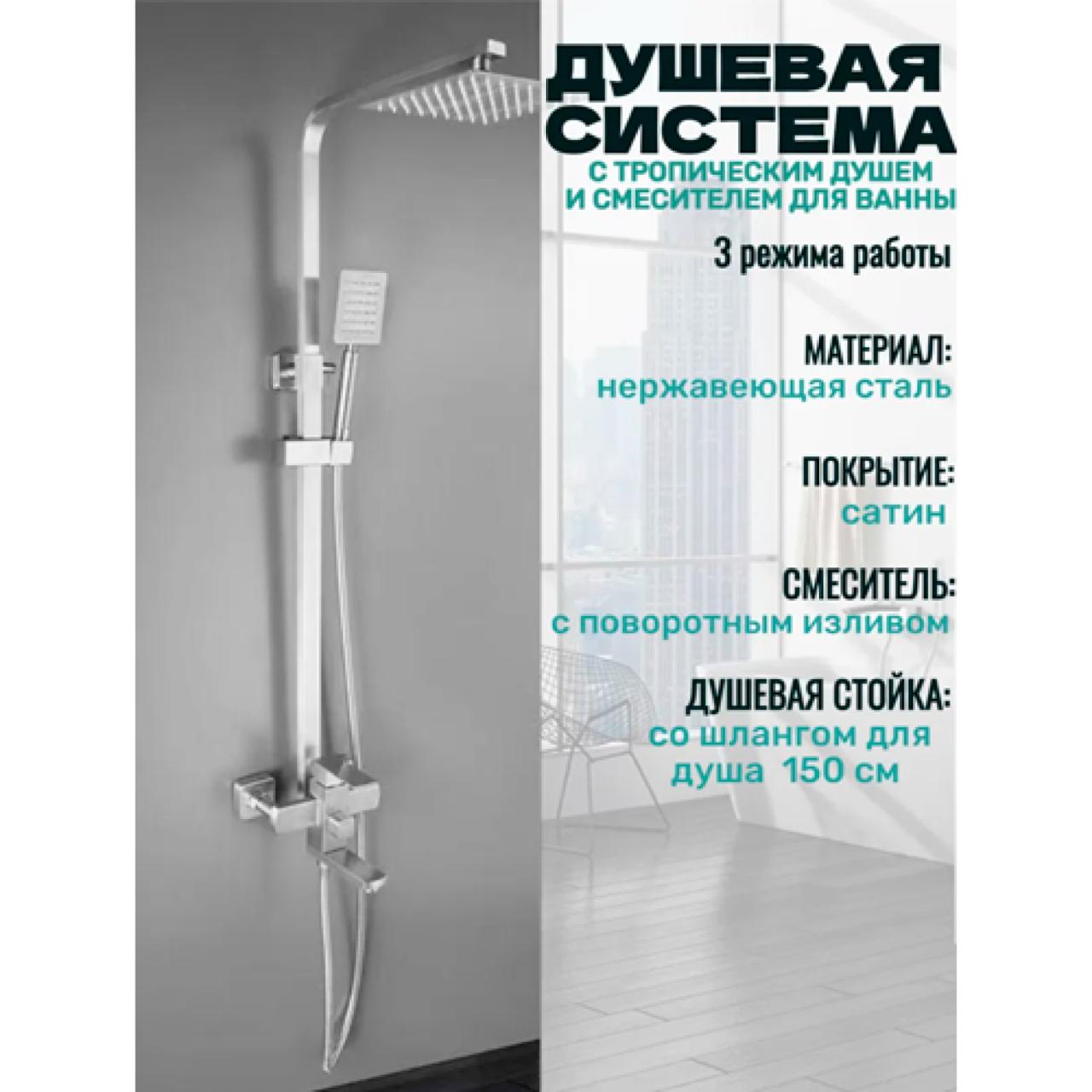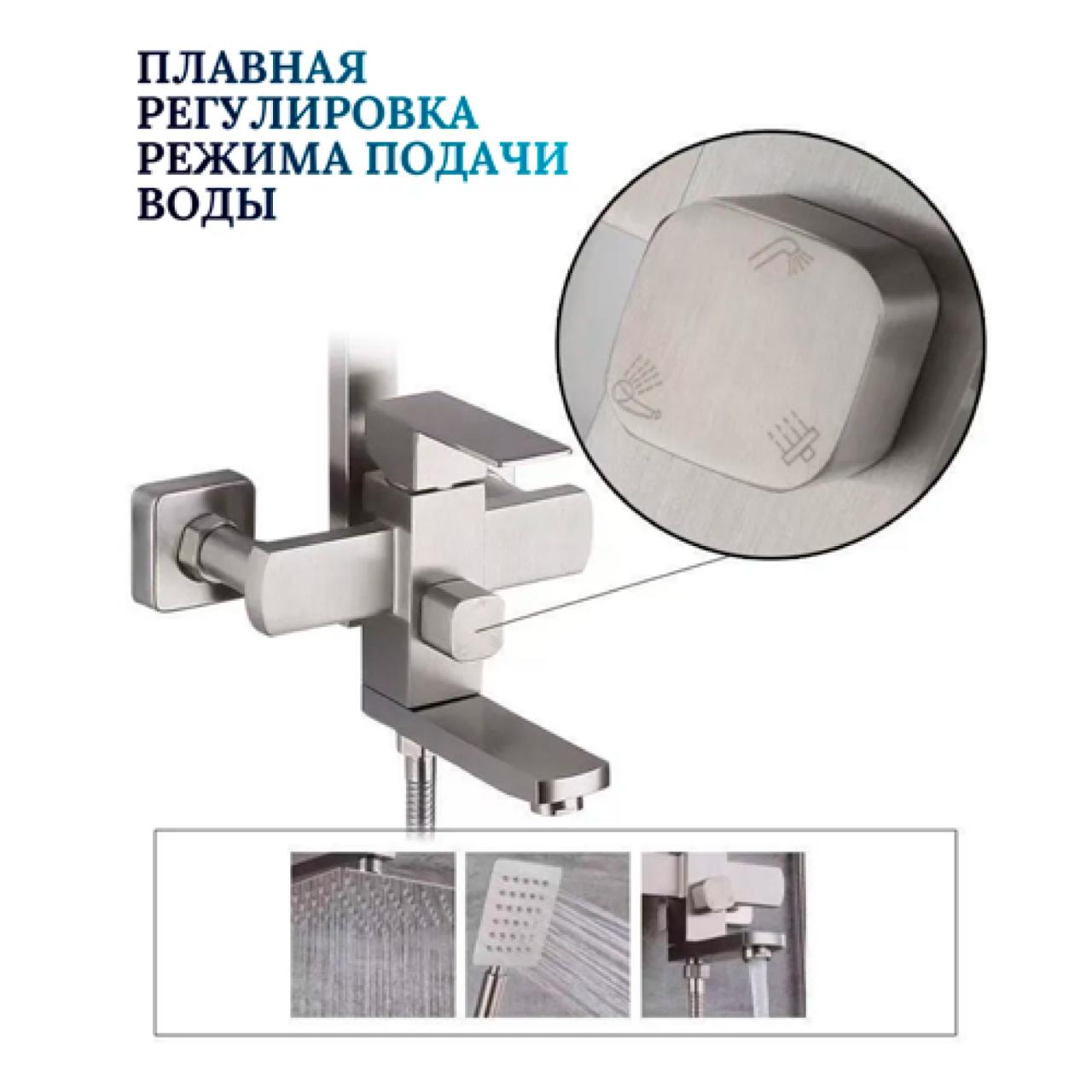 P35304S Душевая стойка со смесителем, сатин, нержавеющая сталь 304. Универсальная душевая стойка — сочетание надёжности, функциональности и современного дизайна. Изготовлена из прочной нержавеющей стали 304 с сатиновым покрытием, устойчивым к коррозии и царапинам. Картридж: керамический, 35 мм — плавное переключение и долгий срок службы. Материал: высококачественная нержавеющая сталь 304. Покрытие сатин — матовая поверхность, устойчивая к загрязнениям. Подходит для большинства ванных комнат. Идеальное решение для комфортного ежедневного использования дома, в квартире или на даче.