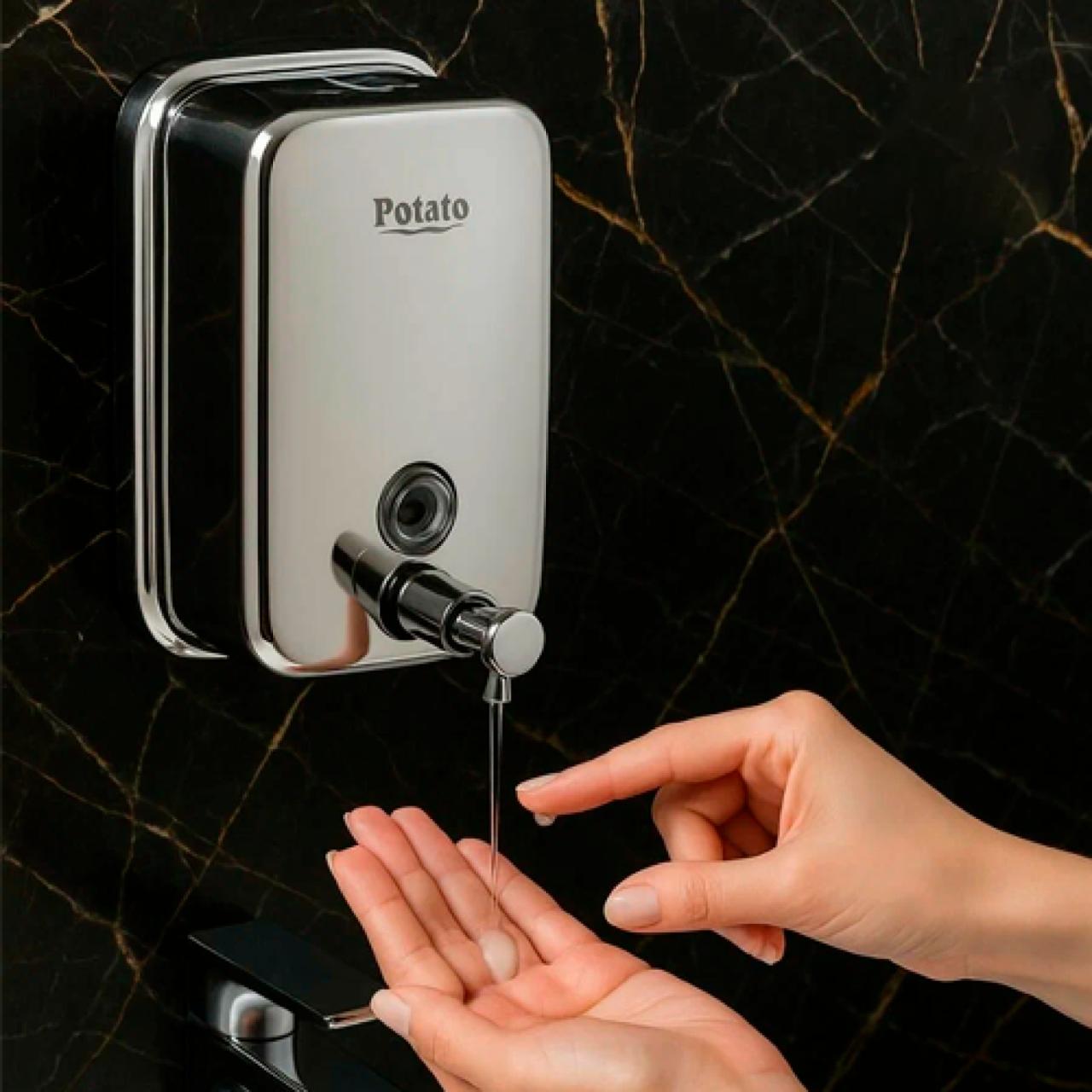 Настенный механический дозатор объемом 800 мл, выполненный в прямоугольном корпусе из прочной нержавеющей стали с зеркальным хромированным покрытием. Оснащен надежной кнопочной системой подачи мыла и смотровым окошком на передней панели для контроля остатка жидкости. Компактная конструкция (180х110х80 мм) оптимальна для использования в ванных комнатах и общественных местах с высокой проходимостью.