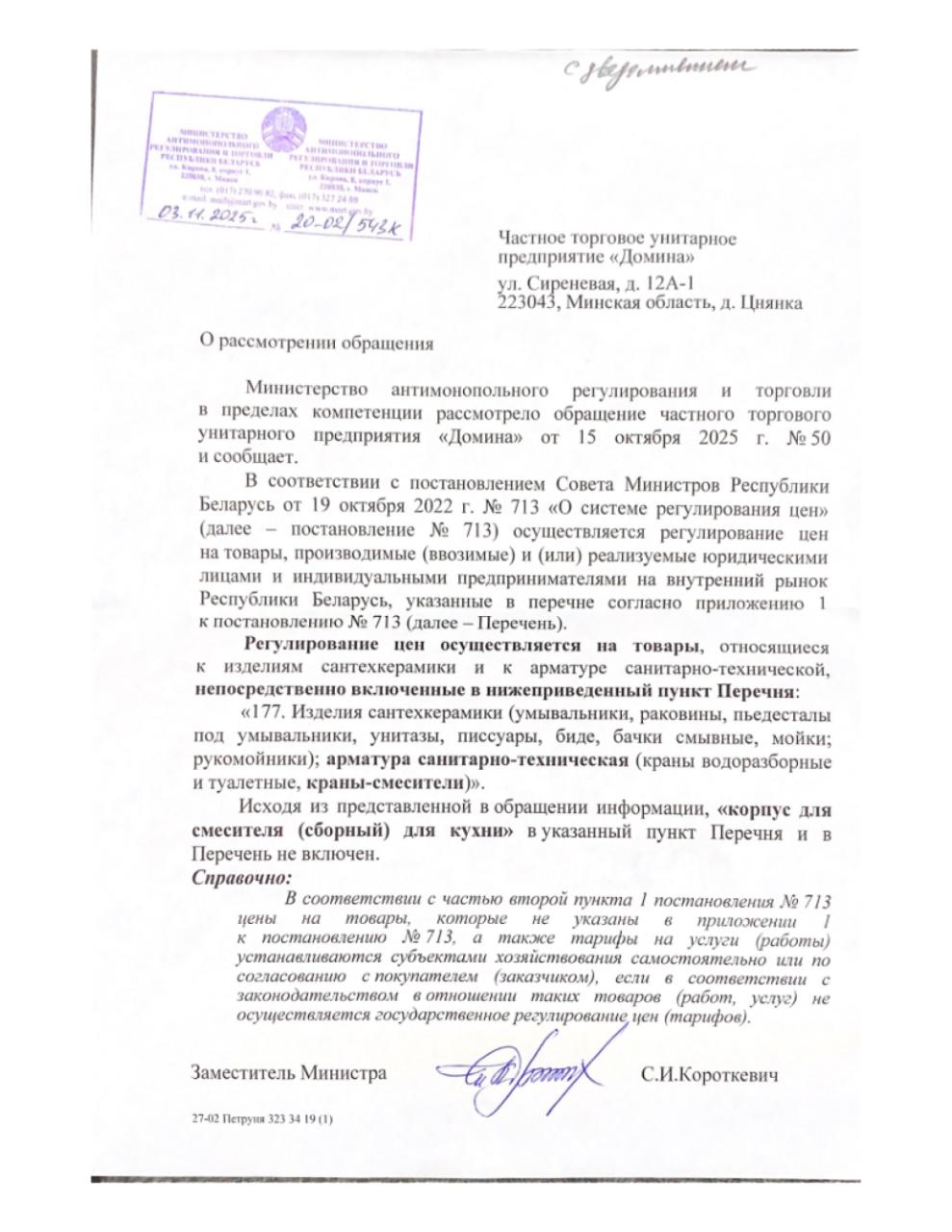 Импортер: Частное торговое унитарное предприятие "Домина" 223043 Минская обл., Минский р-н,