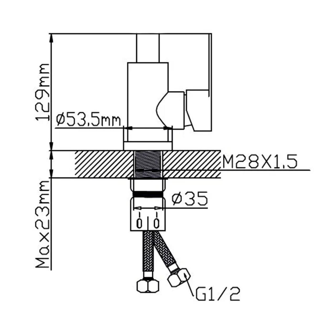 P58308S Смеситель сборный для кухни, 35мм. Однорычажный кухонный смеситель Potato P58308S оснащен надежным керамическим картриджем 35 мм. Корпус выполнен из нержавеющей стали с практичным матовым покрытием «сатин», устойчивым к загрязнениям. Модель фиксируется на мойке с помощью удобной гайки и комплектуется гибкой подводкой для быстрого монтажа.
