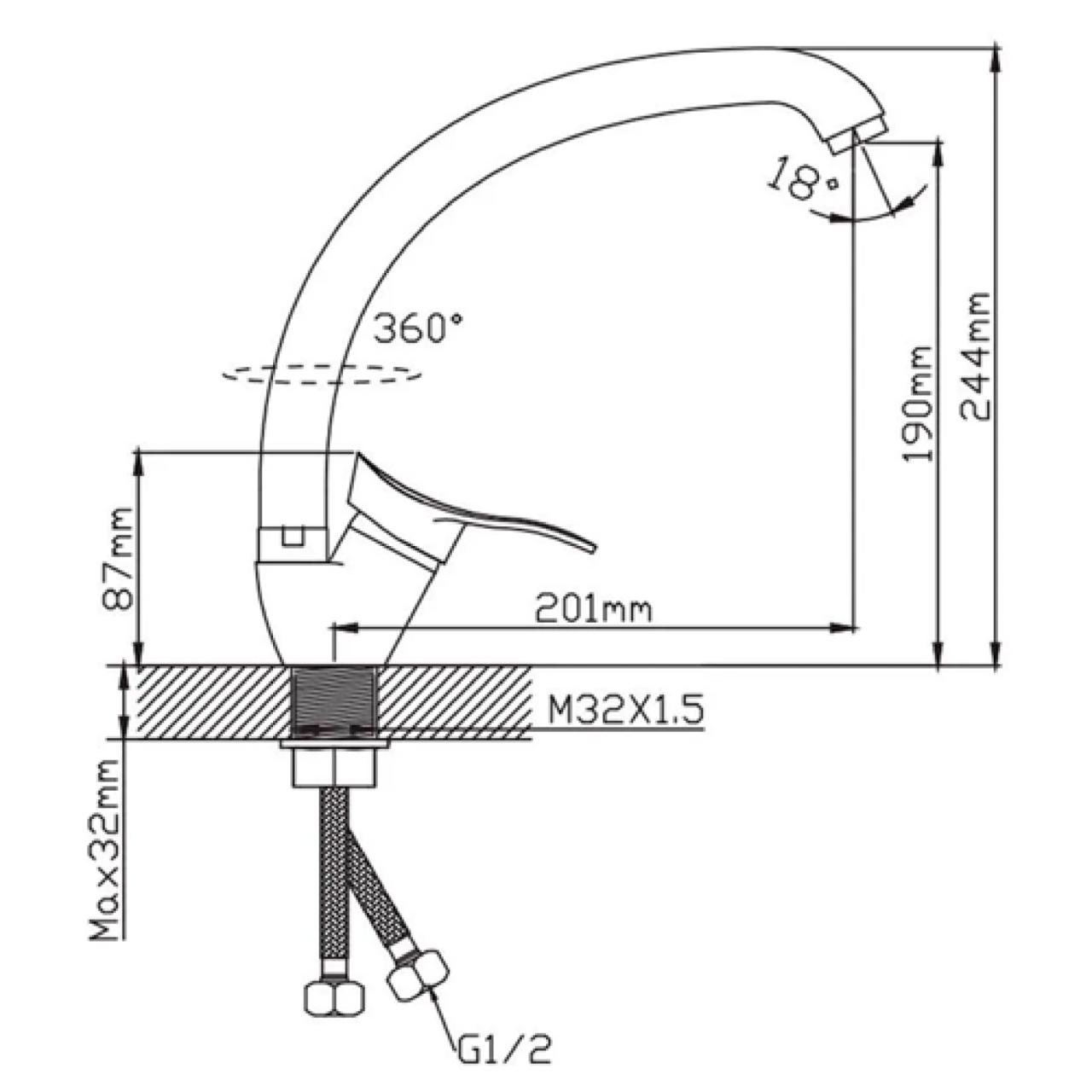 Комплектация: Смеситель, гибкая подводка