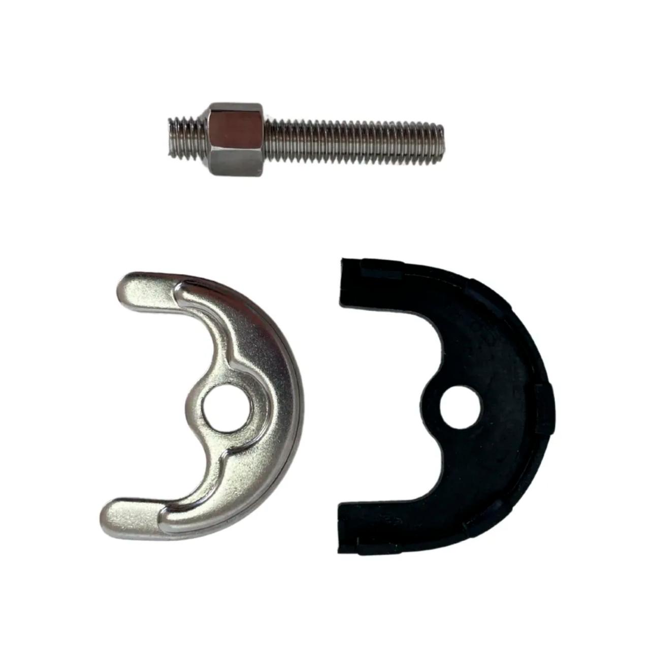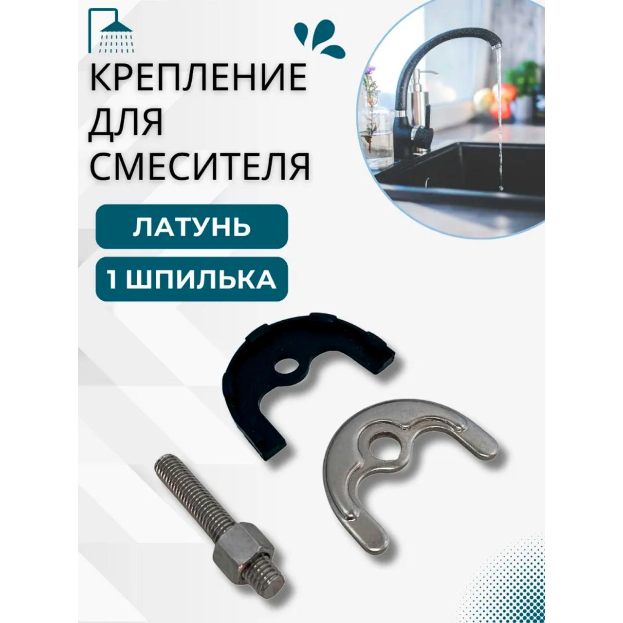 P73 Шпилька под смеситель на 1 крепление — комплектующие для монтажа сантехнического оборудования. Материалы — металл и резина. В канавку смесителя помещается уплотнительная прокладка из резины, которая предотвращает протечку воды под раковину. Ко дну смесителя крепятся шпилька-полумесяц и прокладка. Окончательная фиксация всей конструкции осуществляется с использованием болта с гайкой. По завершении работ смеситель приводится в рабочее положение.