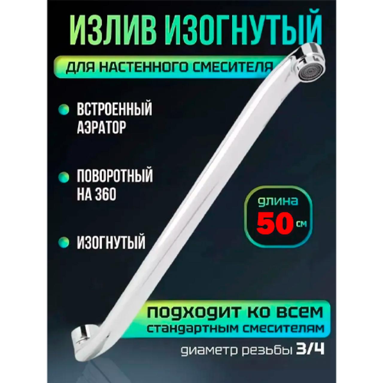 Р50S Излив для смесителя плоский 50см. Покрытие гусака: хром. Носик для крана диаметром гайки 3/4". Излив - стандартная комплектующая часть смесителя. Данная модель удобна как для раковины, так и для ванны. Элегантная форма гармонично впишется в любой интерьер. Встроенный аэратор экономит расход воды и придаёт потоку воздушность и мягкость. Изделие имеет долгий срок службы.
