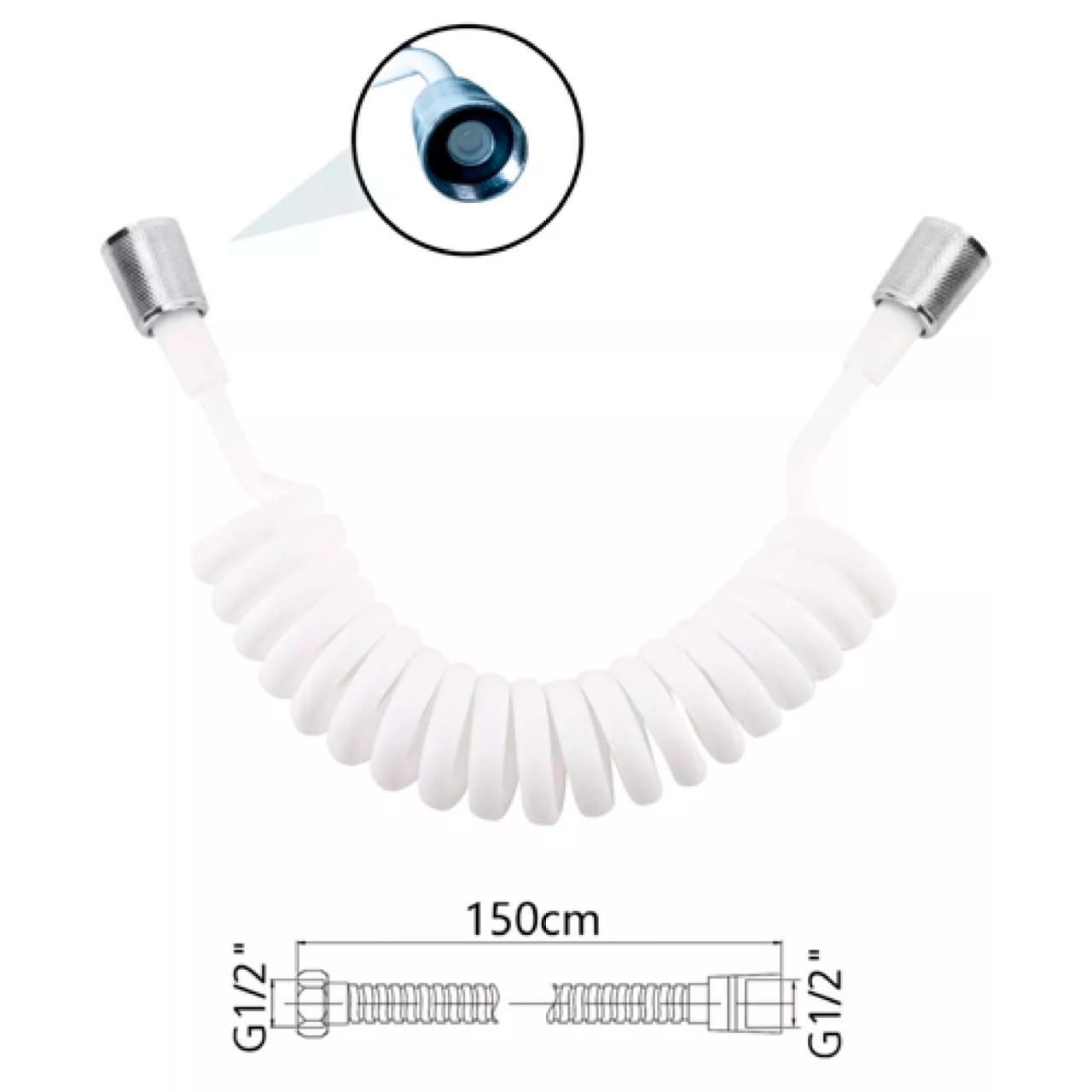 Р59-157 Гибкий спиральный шланг для биде или гигиенического душа (может использоваться и для душевой кабины)— это практичное решение для тех, кто ценит комфорт, гигиену и функциональность в ванной комнате. Благодаря спиралевидной конструкции длиной от 40 до 150 см, он не занимает лишнего пространства и идеально подходит для установки в небольших санузлах. Шланг легко растягивается до нужной длины и возвращается в исходное положение, обеспечивая удобство использования в любых условиях. Диаметр подключения 1/2" делает его совместимым с большинством стандартных смесителей и гигиенических леек.