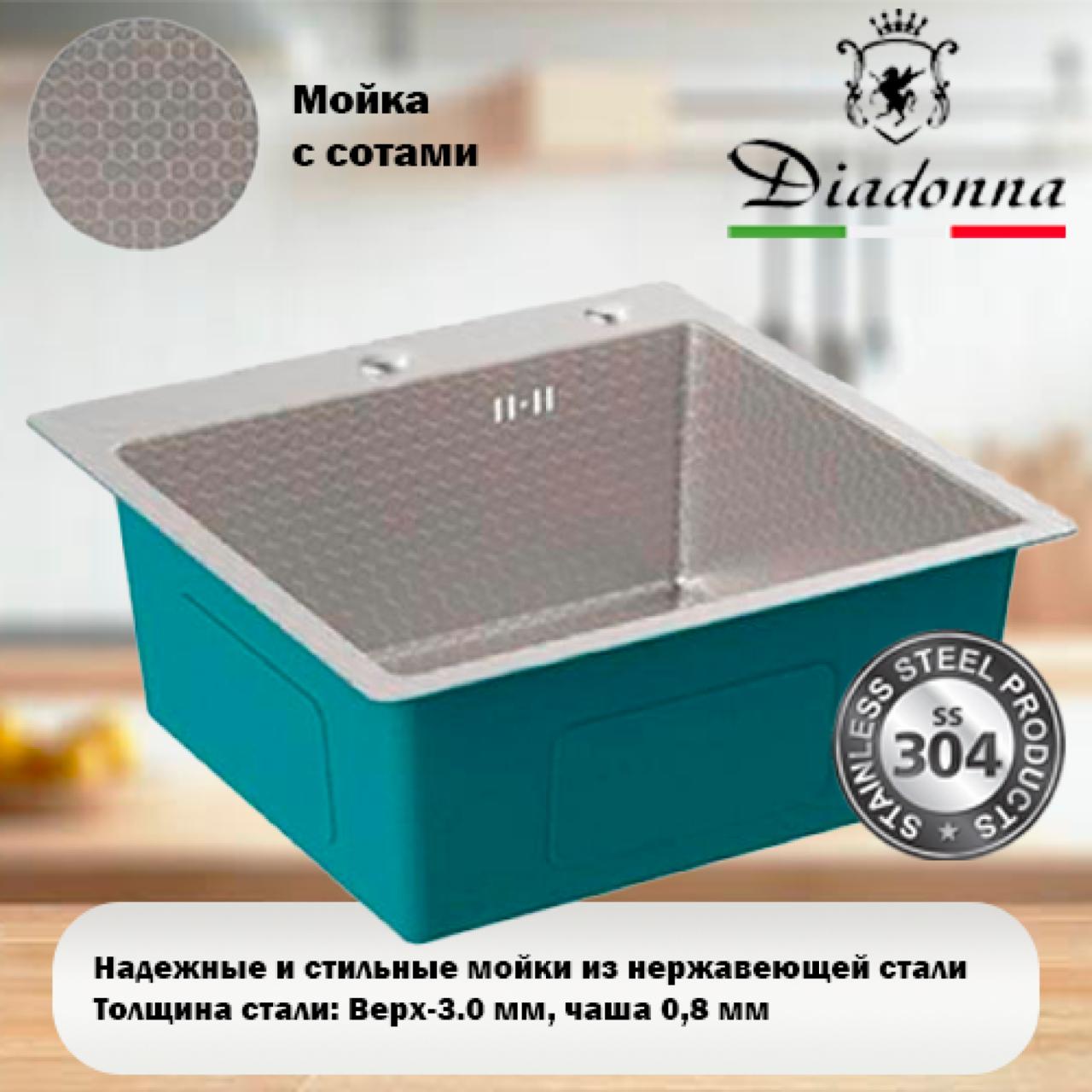 Квадратная кухонная мойка с рисунком из нержавеющей стали с размерами 500×500×200 мм. Универсальное решение для кухни. Сливное отверстие: 90 мм/110 мм