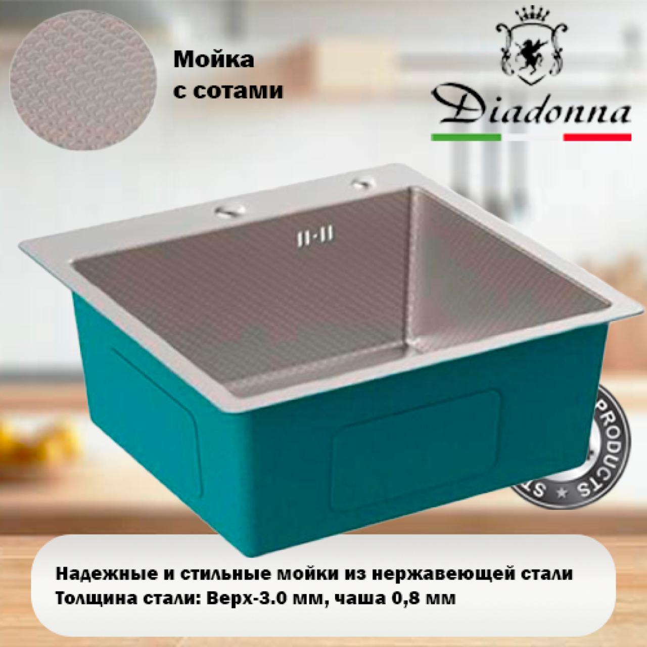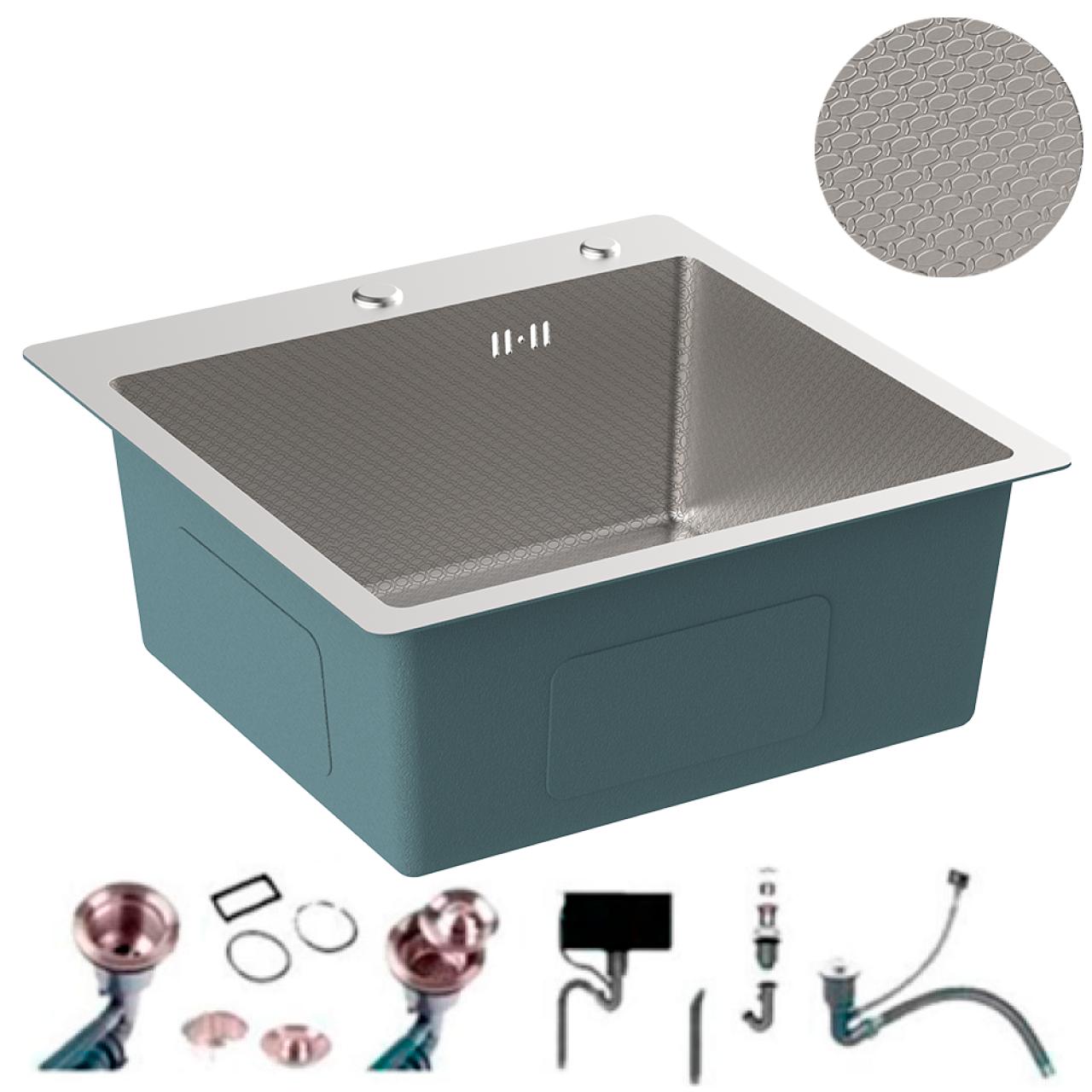 Квадратная кухонная мойка с рисунком из нержавеющей стали с размерами 500×500×200 мм. Универсальное решение для кухни. Сливное отверстие: 90 мм/110 мм