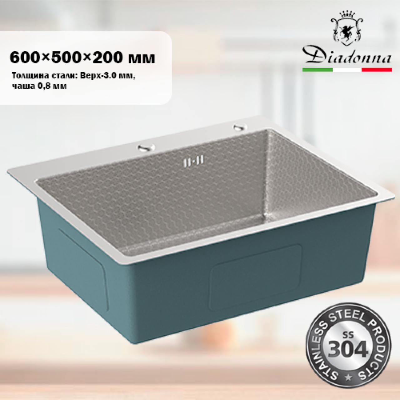 Кухонная мойка с рисунком из высококачественной нержавеющей стали. Размеры 600×500×200 мм. Идеально подходит для установки на кухонные столешницы.