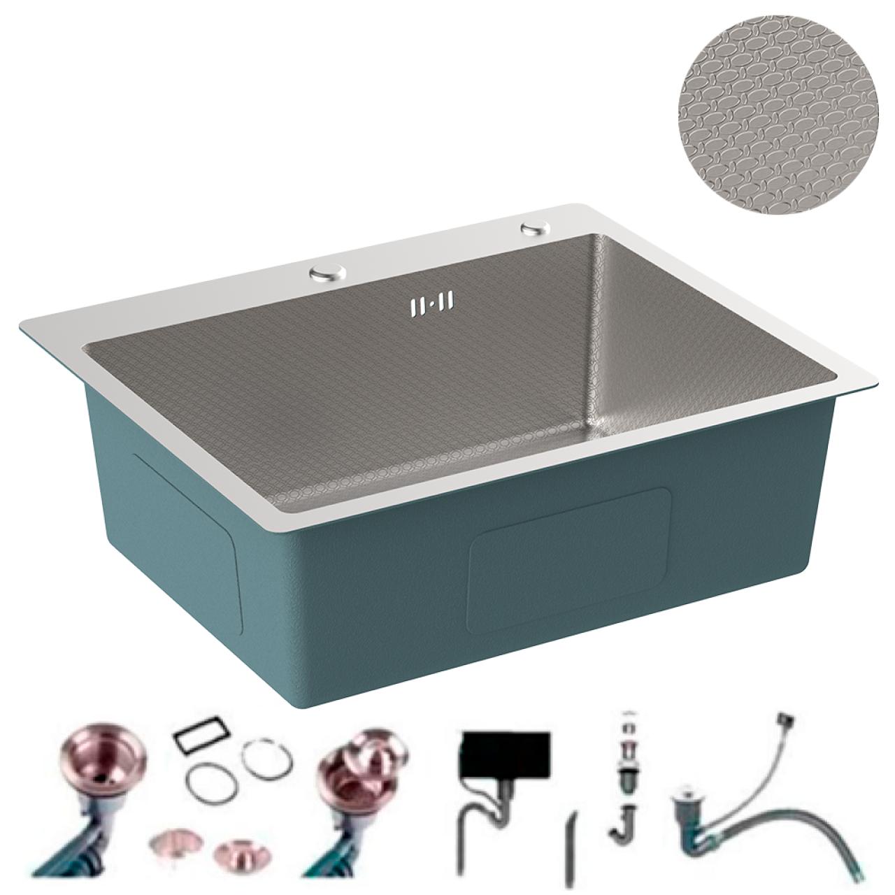 Кухонная мойка с рисунком из высококачественной нержавеющей стали. Размеры 600×500×200 мм. Идеально подходит для установки на кухонные столешницы. Сливное отверстие: 90 мм/110 мм