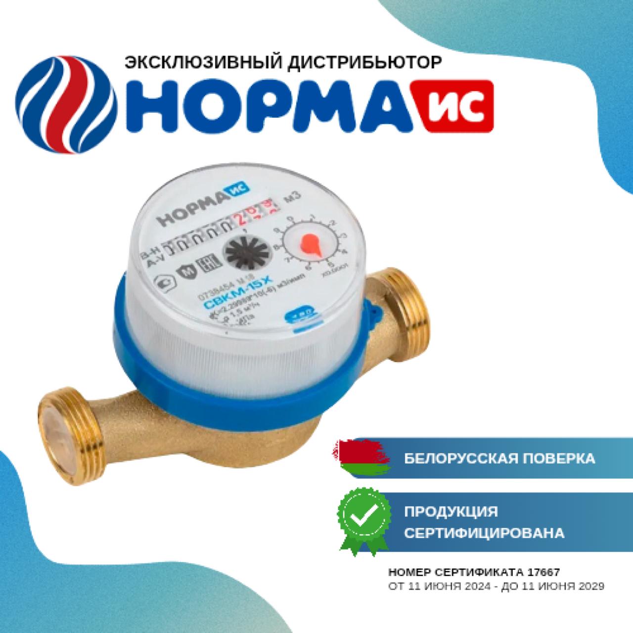 Счетчик воды СВКМ-15 Х без комплекта присоединения, с гидроблоком К03, четырехполюсным магнитом и несъёмной крышкой