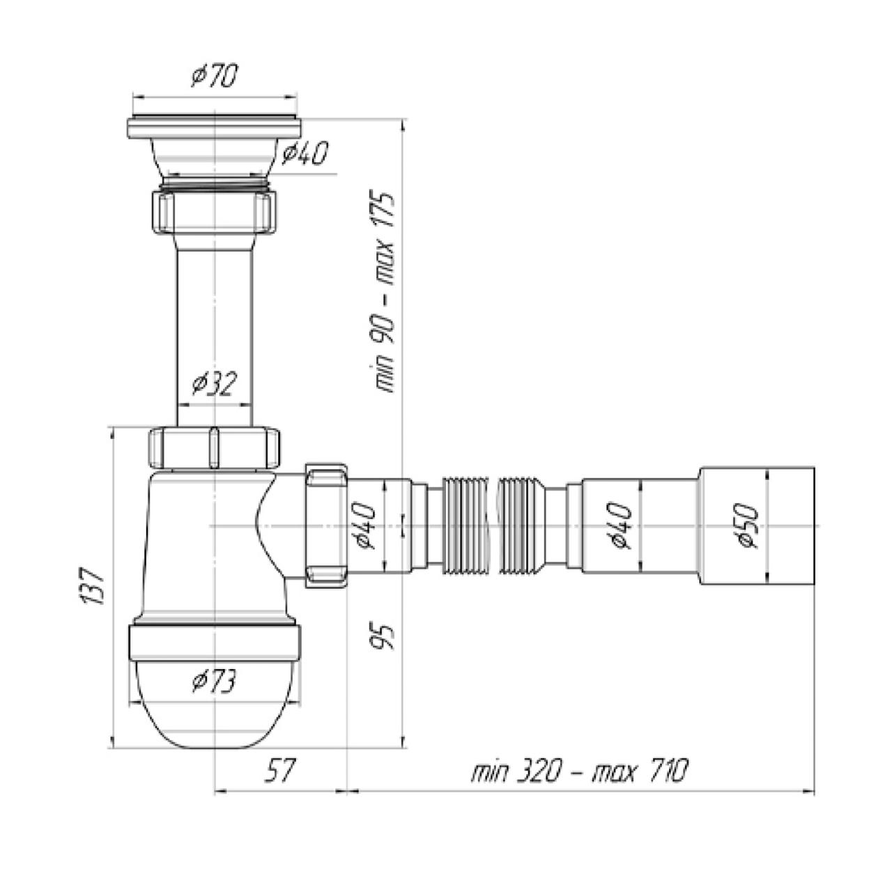 Гибкая труба 40×50 мм облегчает установку сифона даже в труднодоступных местах и позволяет адаптировать конструкцию под особенности монтажа.