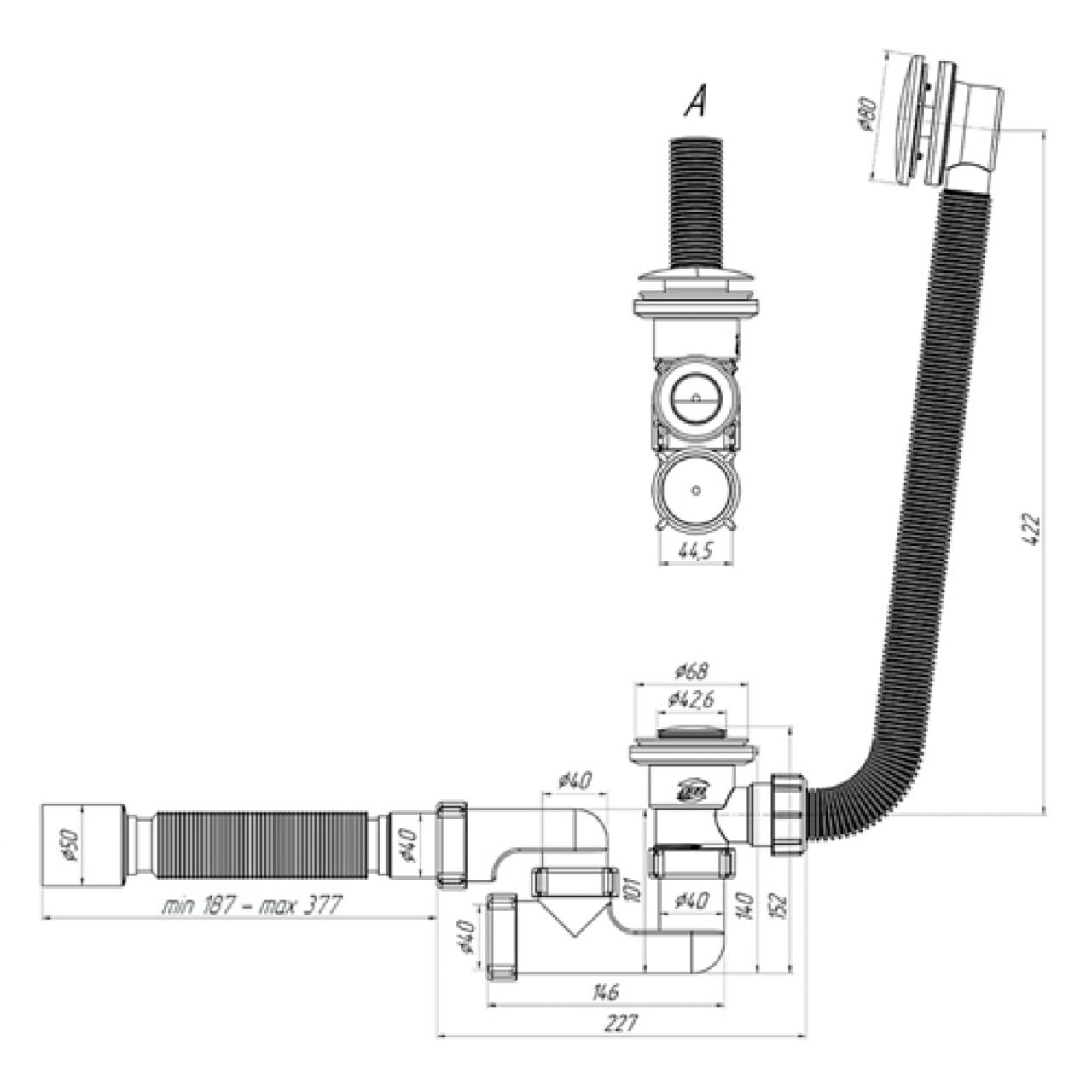 Сифон Ани д/в кл-кл. регулир. с вып. и перел. г/т 375*40*50