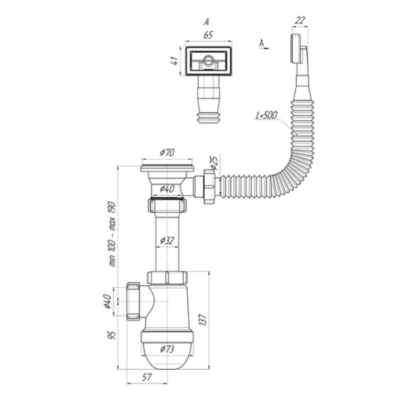 Стандартные размеры делают сифон универсальным выбором для большинства кухонных моек.