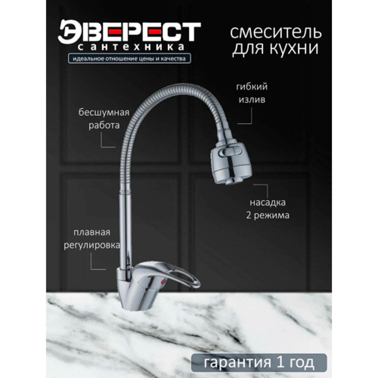 Смеситель для кухни Эверест B58-040 — практичный и надёжный одноручковый смеситель с гибким изливом, созданный для комфорта и удобства в повседневном использовании. Корпус выполнен из качественного цинкового сплава с прочным хром-никелевым покрытием, которое придаёт блеск, защищает от коррозии и облегчает уход. Модель оснащена долговечным картриджем 40 мм с керамическими пластинами, обеспечивающим плавную и точную регулировку напора и температуры воды. Гибкий излив в металлической оплётке позволяет легко направлять поток воды, а встроенная насадка-аэратор поддерживает два режима: обычная струя/рассеянная струя. Аэратор с пластиковой вставкой насыщает воду воздухом, снижает расход и защищён от известкового налёта. Вставка легко чистится и при необходимости заменяется. Крепление на гайке. В комплект входят две гибкие подводки 1/2”, длиной 35 см.
