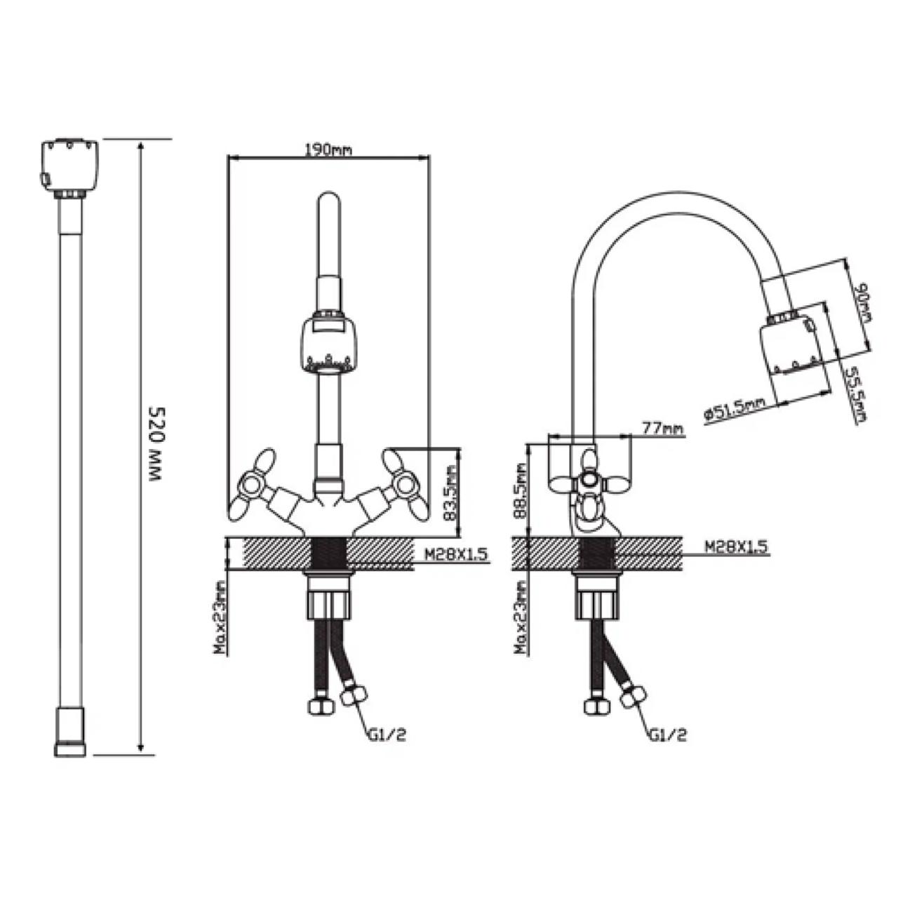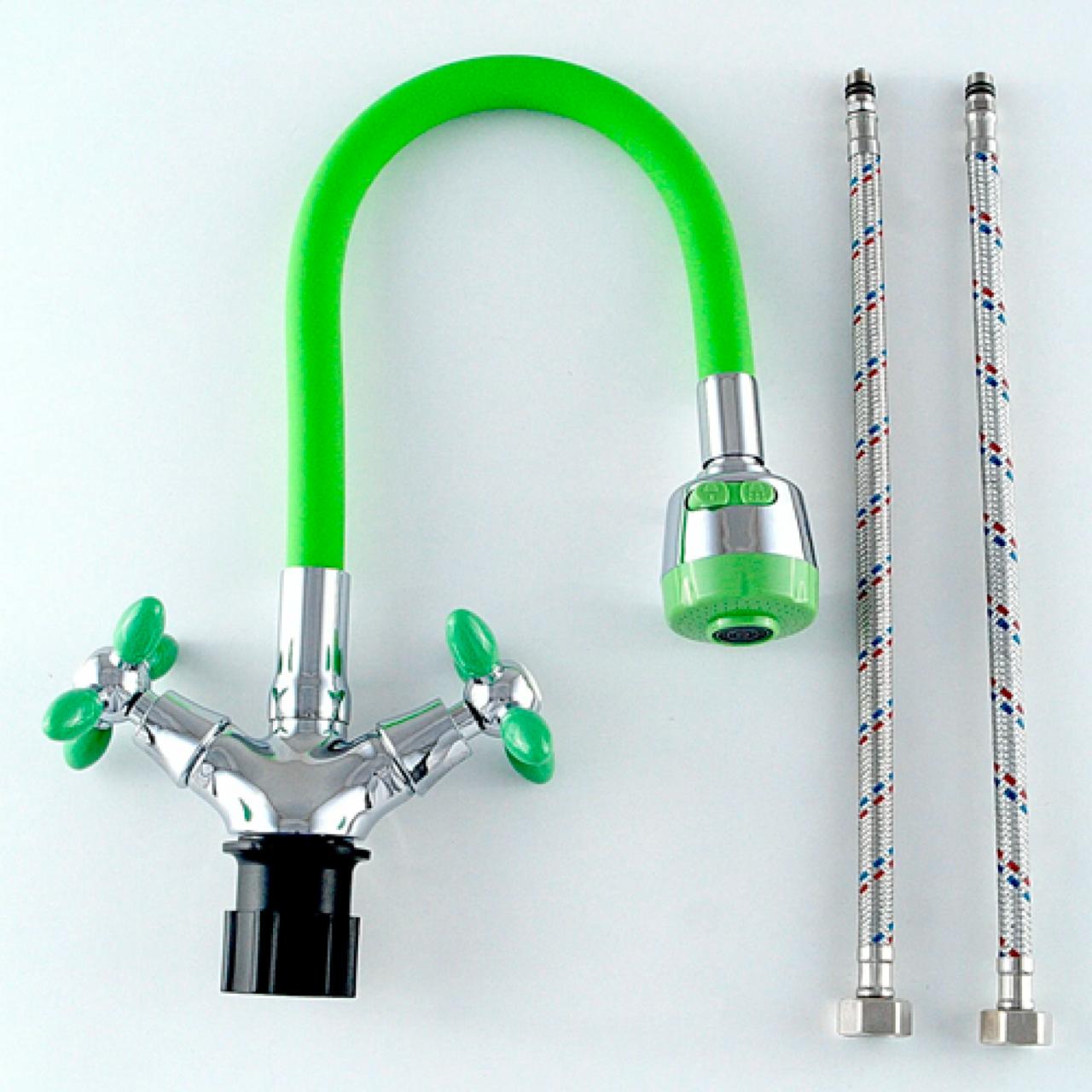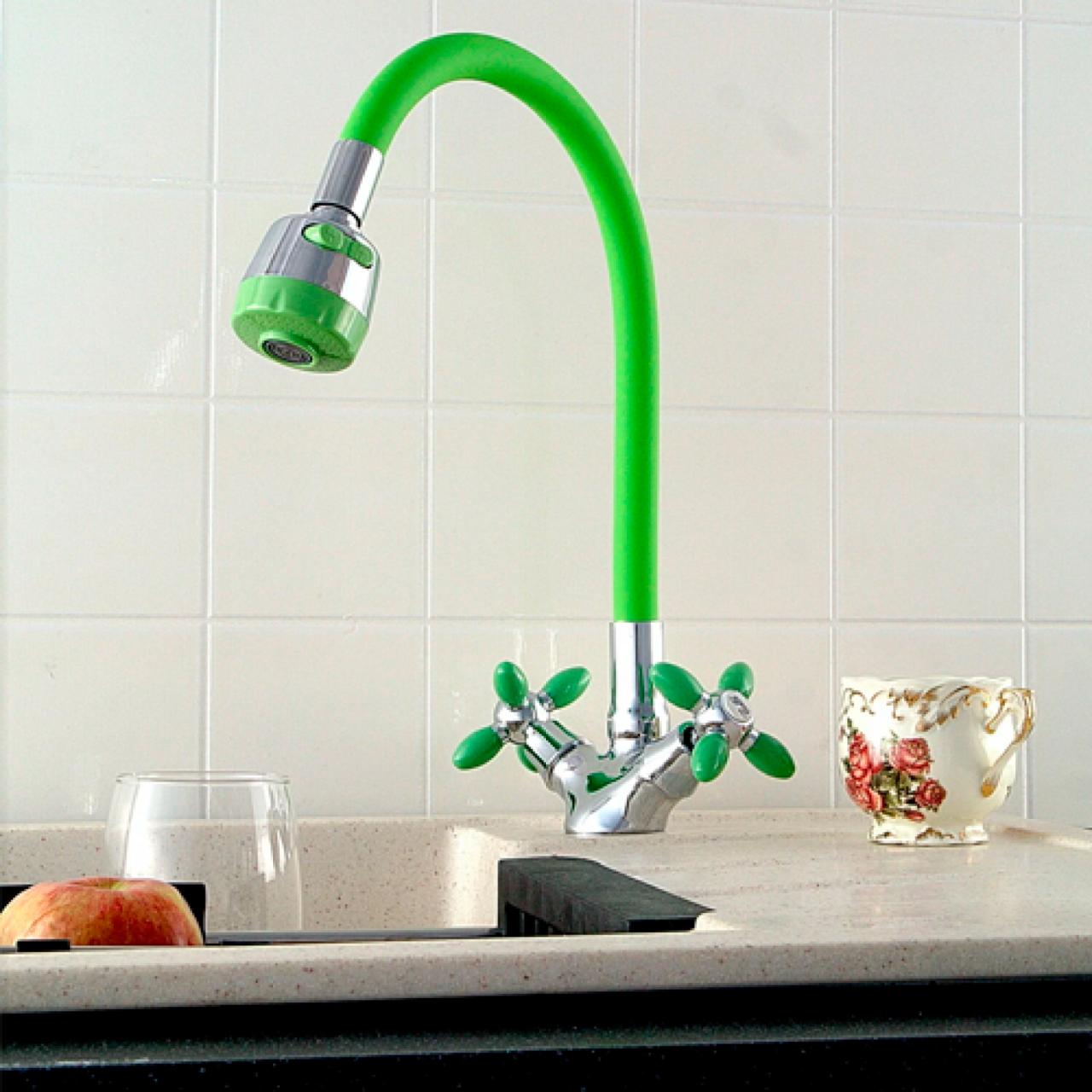 Смеситель для кухни Эверест B57-071E изготовлен из высококачественного материала. Хром-никелевое покрытие корпуса улучшает внешний вид, облегчает уход и продлевает срок службы смесителя. Излив смесителя высокий, гибкий, в зелёной силиконовой оболочке. На конце излива установлена пластиковая насадка-аэратор с двумя режимами струи: традиционной и рассеянной. Для регулировки воды применяются латунные кран-буксы с керамическими пластинами и увеличенным сроком службы. Отдельные элементы ручек и излива также зелёного цвета. На раковину смеситель крепится с помощью удобного крепежа на гайке. К воде подключается двумя гибкими подводками 1/2" длиной 35 см.
