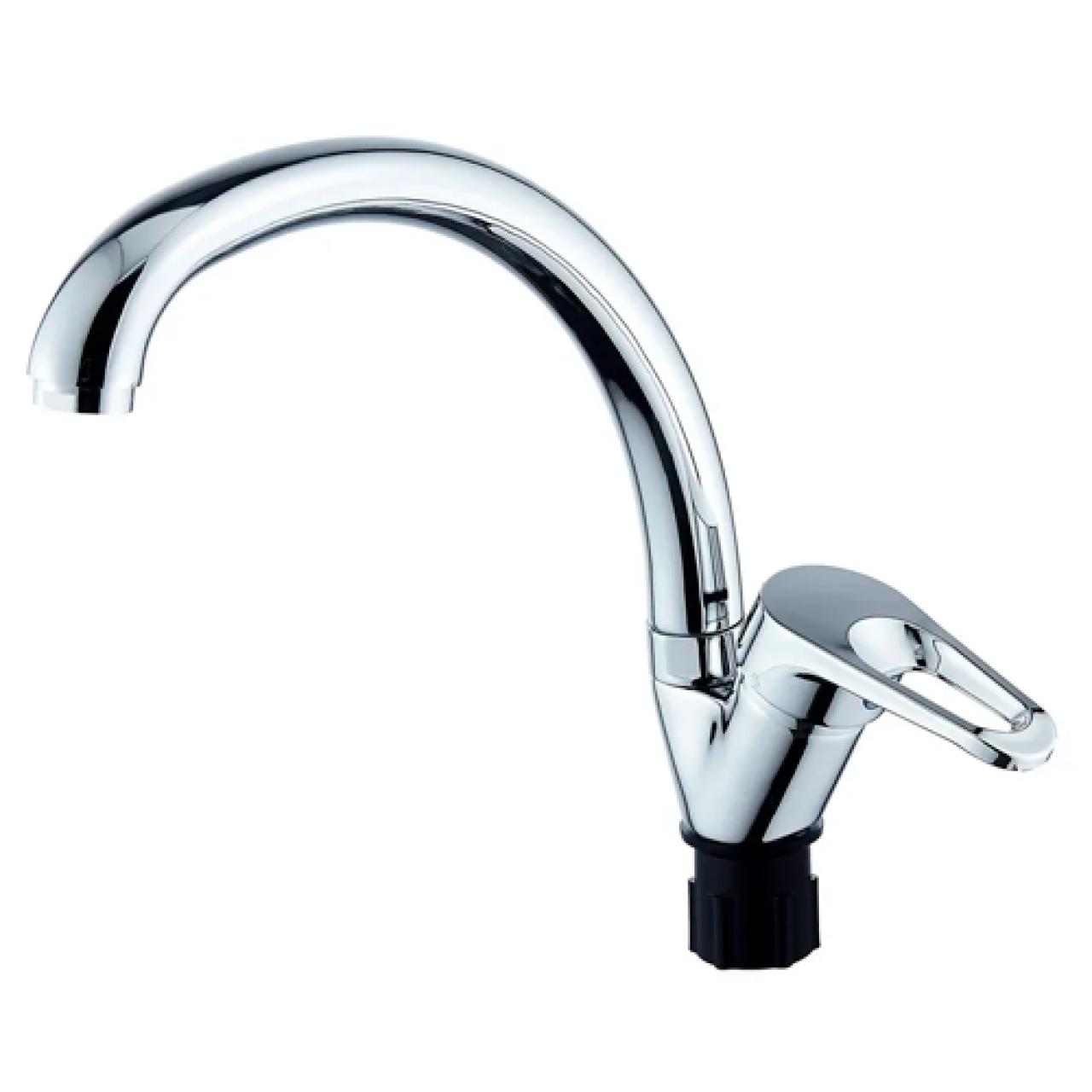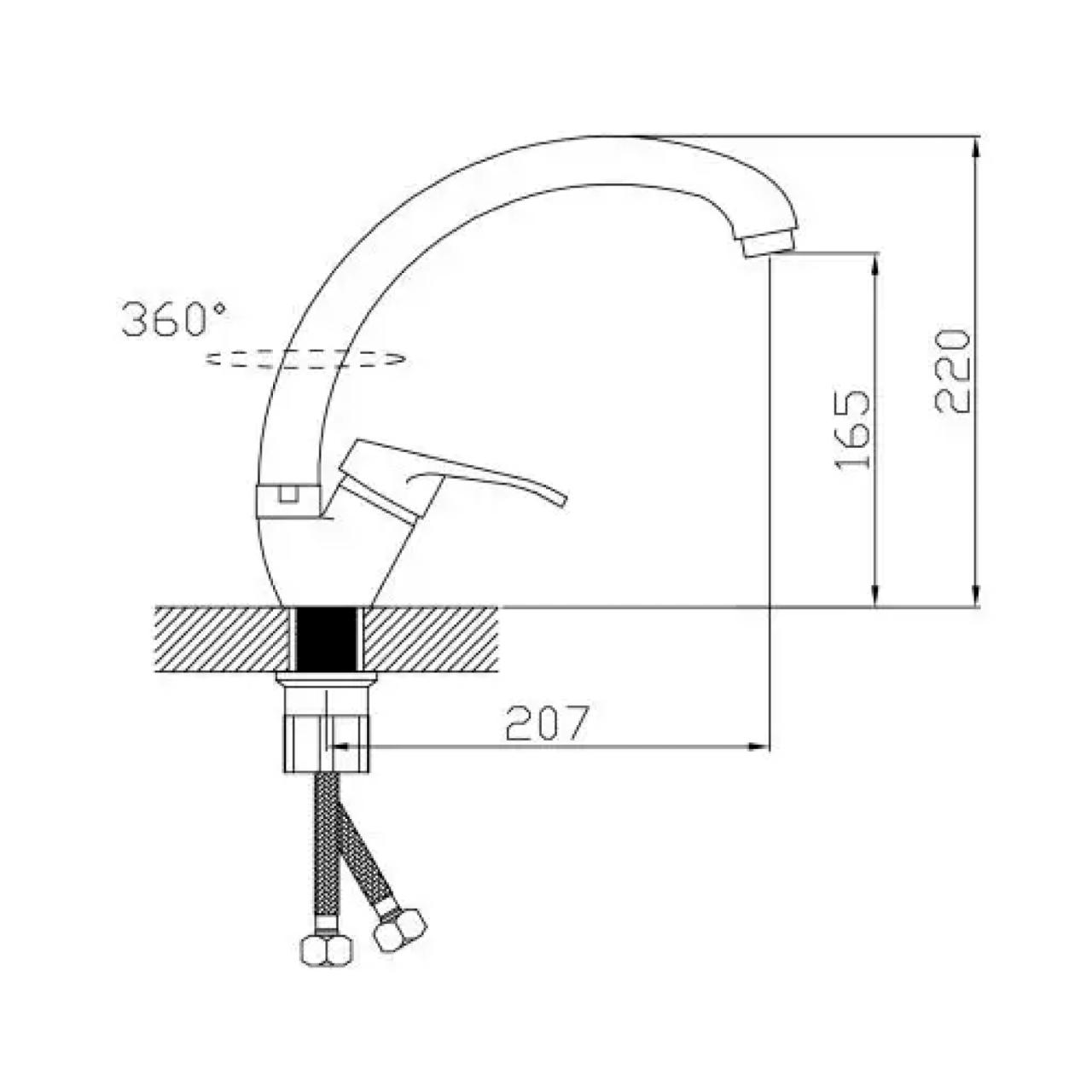 Смеситель для кухни Эверест B59-028 одноручковый с высоким изливом изготовлен из качественного цинкового сплава. Хром-никелевое покрытие улучшает внешний вид, облегчает уход и продлевает срок службы смесителя. Для регулировки воды в смесителе применяется картридж диаметром 35 мм с керамическими пластинами и увеличенным сроком службы. В изливе используется аэратор с пластиковой вставкой, которая не ржавеет и долго не покрывается известковым налётом. На мойку смеситель крепится с помощью удобного крепления на гайке. К воде подключается двумя гибкими подводками 1/2" длиной 35 см. В комплектацию входят смеситель, излив на гайке, крепёж, две гибкие подводки 1/2" длиной 35 см и паспорт изделия.