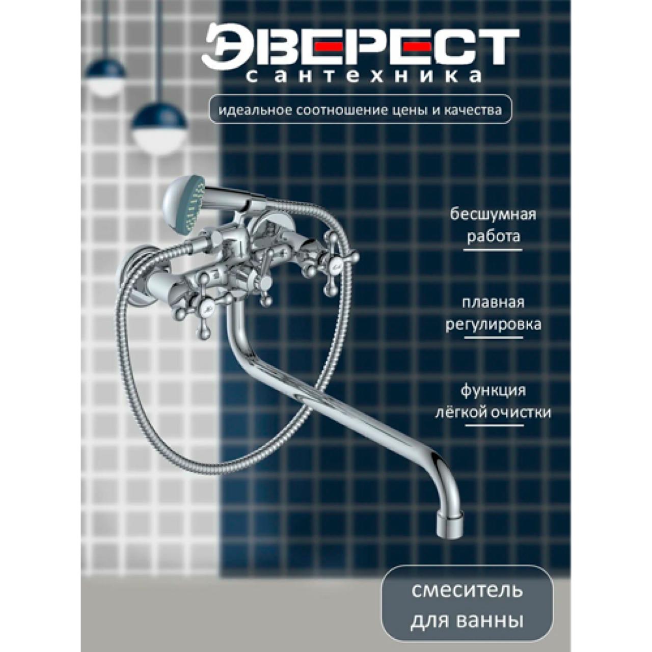 Смеситель на ванну Эверест B22-351 изготовлен из качественного цинкового сплава. Хром-никелевое покрытие корпуса улучшает внешний вид, продлевает срок службы и облегчает уход за смесителем. Излив у смесителя круглый S-образный, поворотный с аэратором. Аэратор с пластиковой вставкой. Она не ржавеет, долго не покрывается известковым налётом и легко очищается или меняется. Переключатель душ-кран поворотный, в корпусе смесителя. Для регулировки воды применяются оригинальные кран-буксы с керамическими пластинами и увеличенным сроком службы. Душевой шланг в металлической хромированной оплётке 1/2"х1/2" длиной 150 см. Лейка пластиковая на 1 вид струи. Держатель душевой лейки на корпусе смесителя.
