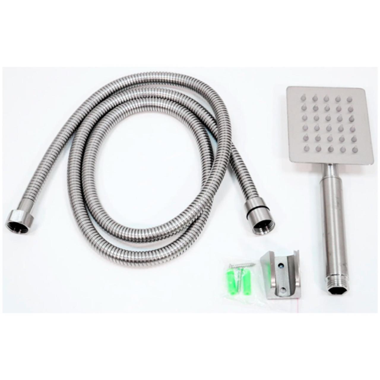 Комплектация: Смеситель, душевая лейка 1 режим струи, держатель лейки настенный 1 положение, шланг в металлической оплётке 1/2"х1/2" длиной 150 см, два эксцентрика 1/2"х3/3", два отражателя 3/4", две резиновые прокладки 3/4", паспорт изделия