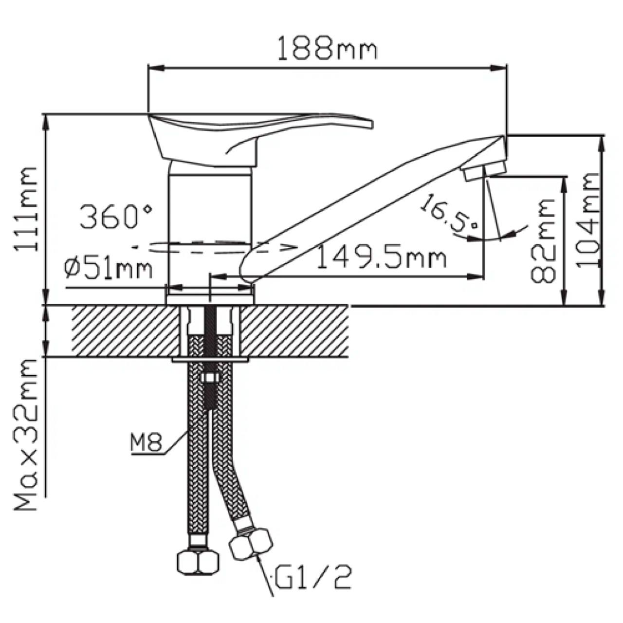 Комплектация: Смеситель, две подводки 1/2" длиной 35 см