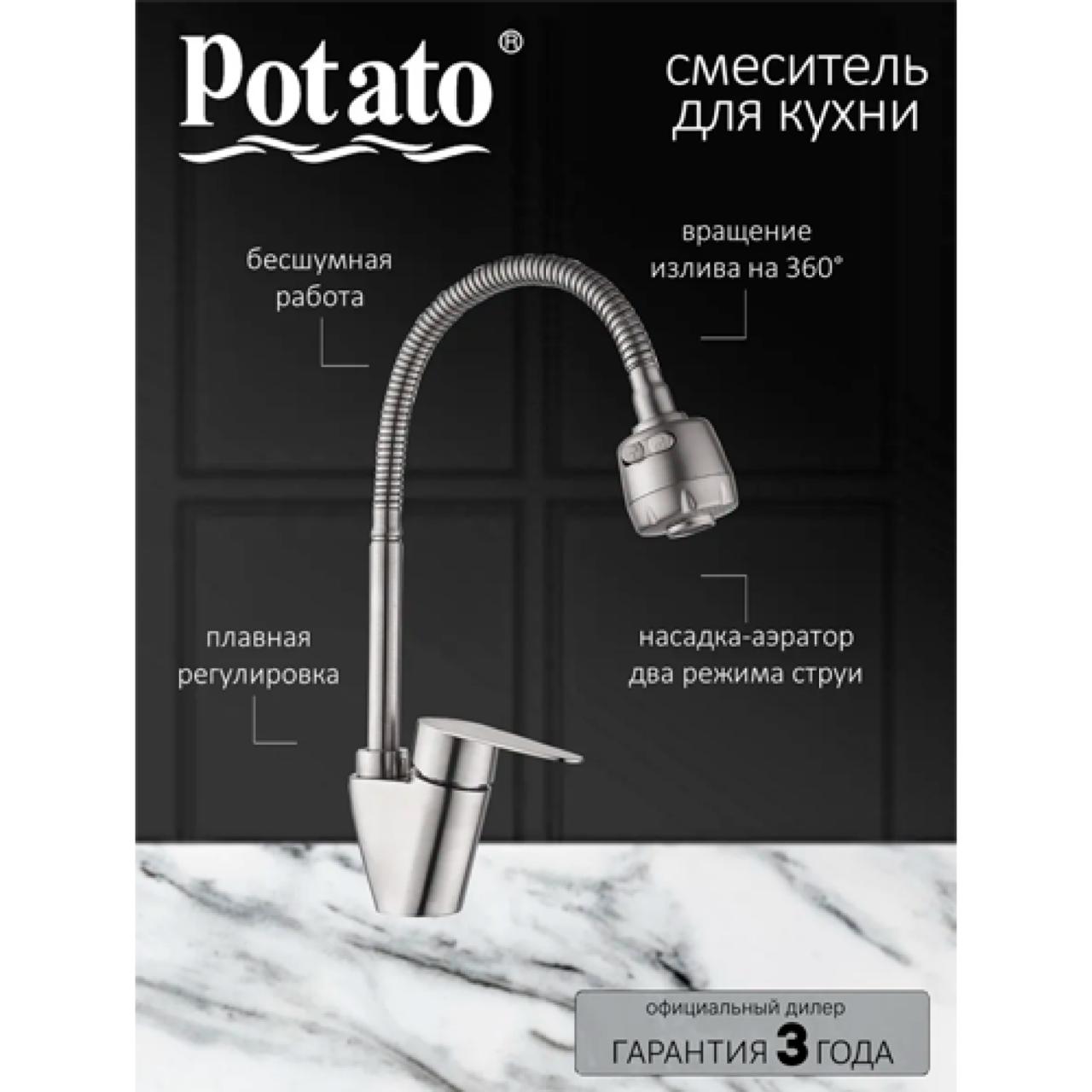 смеситель POTATO нерж, для кухни с гибким изливом P58310SN